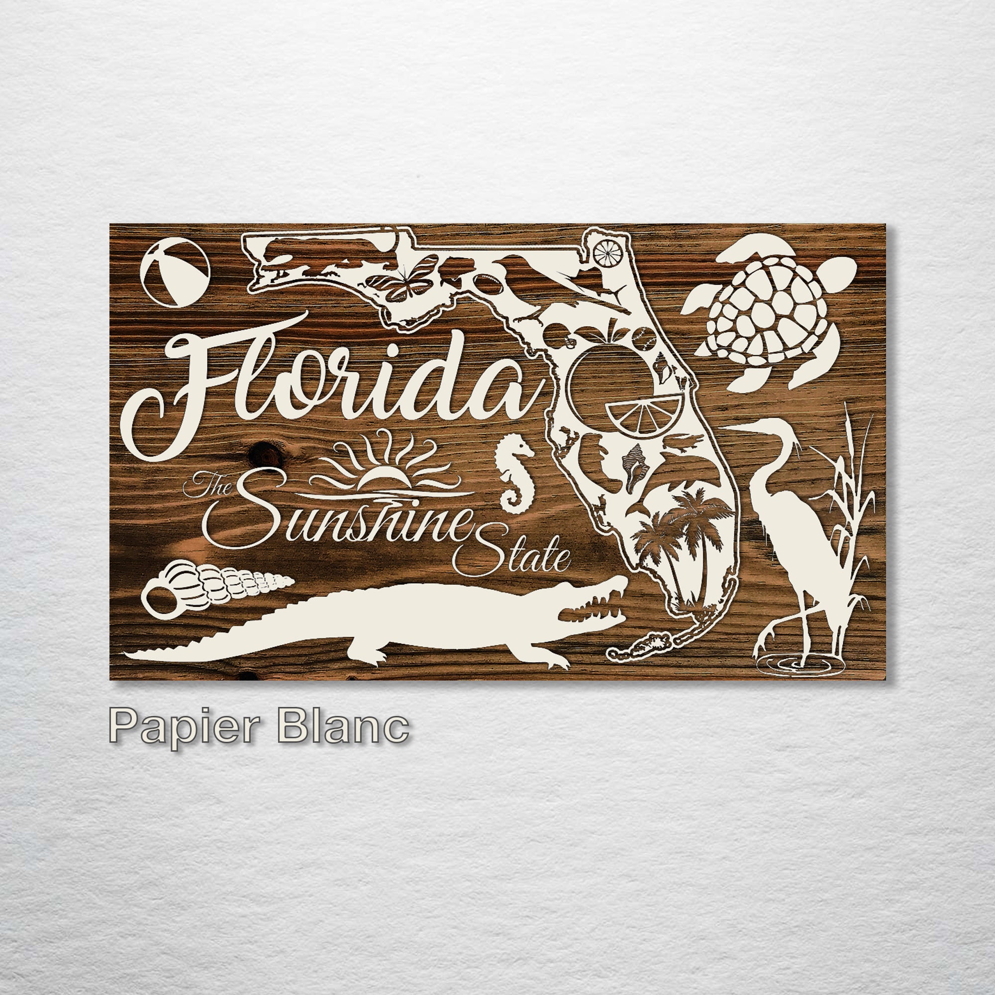 Abstract Wood Map of Florida: This unique piece of wall art features an abstract, wood-engraved map of Florida that effortlessly combines geographic interest with modern aesthetic. Ideal for Florida natives, fans of abstract design, or those who have a special connection to the Sunshine State, this artwork captures the essence of Florida in a fresh, new way.