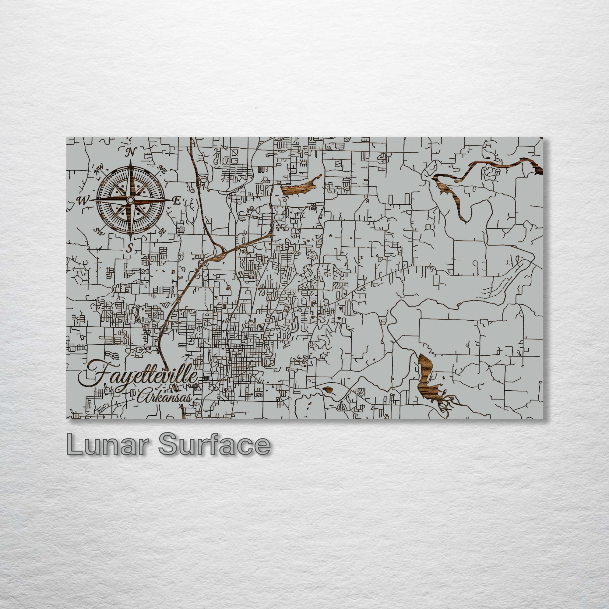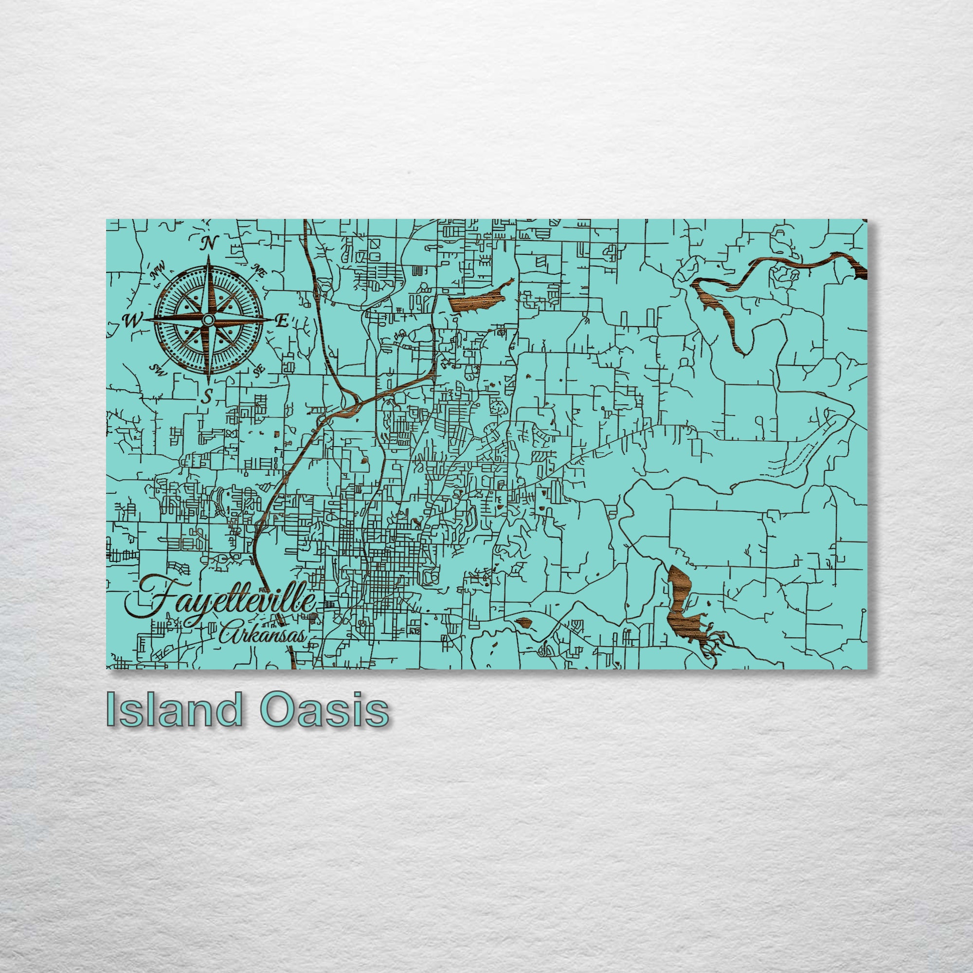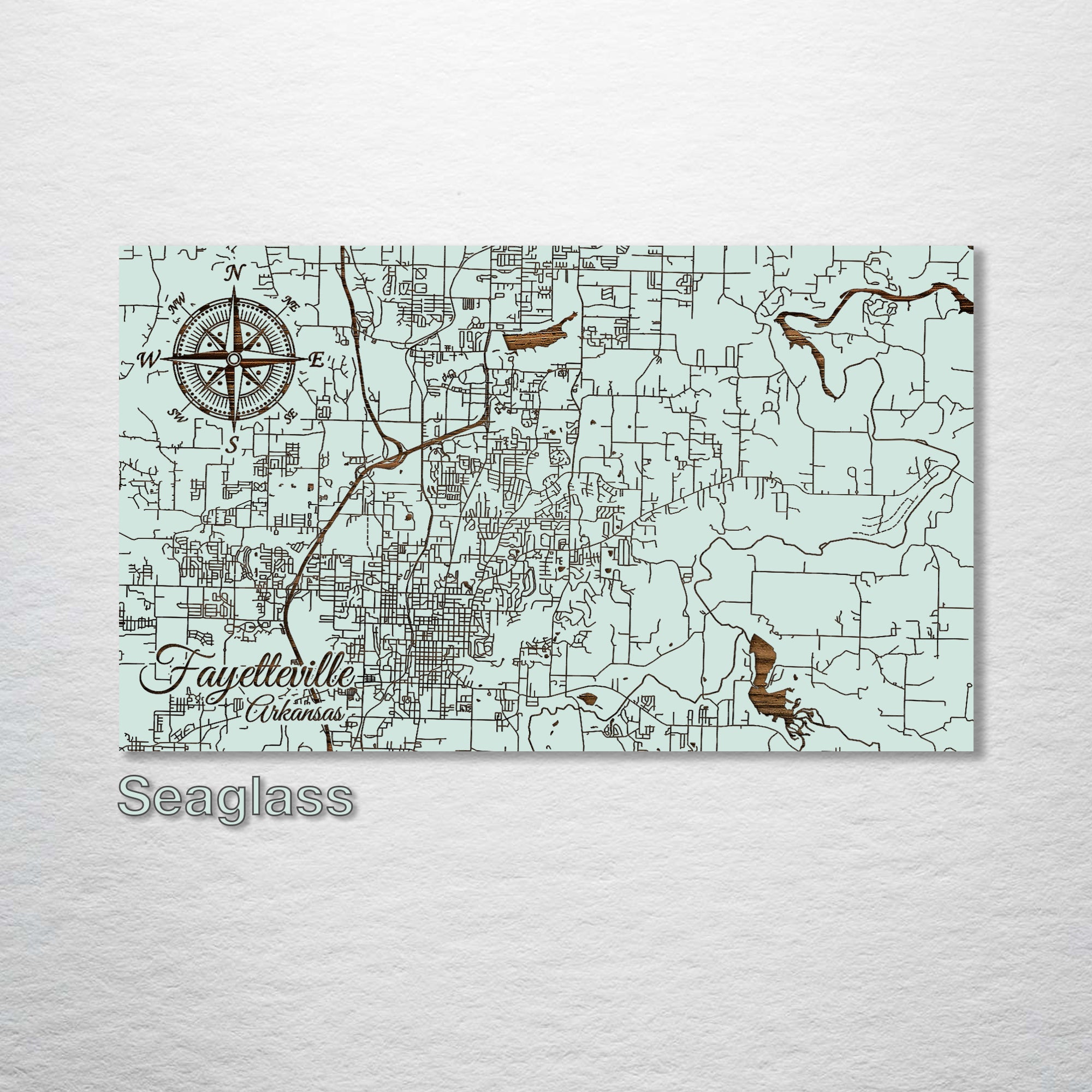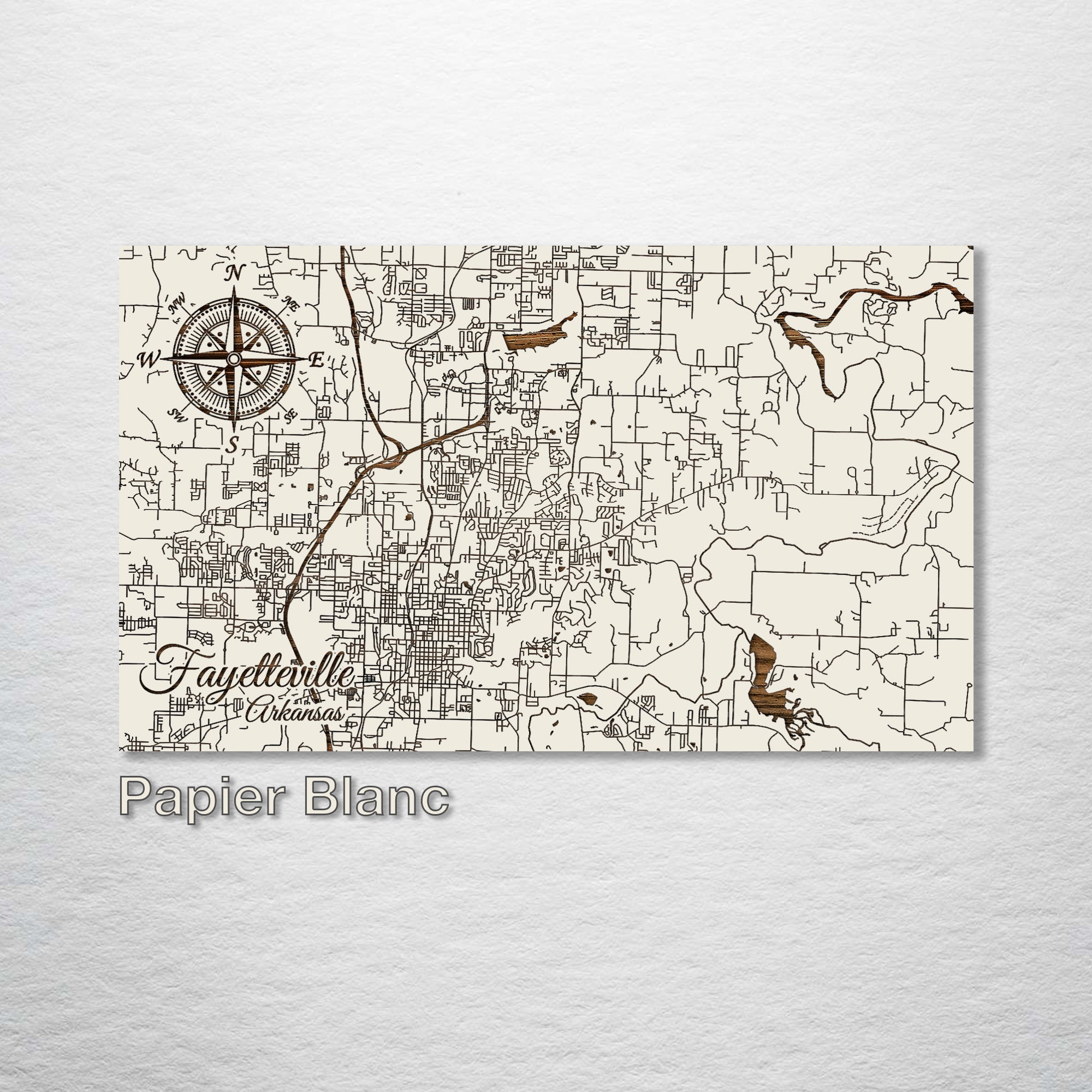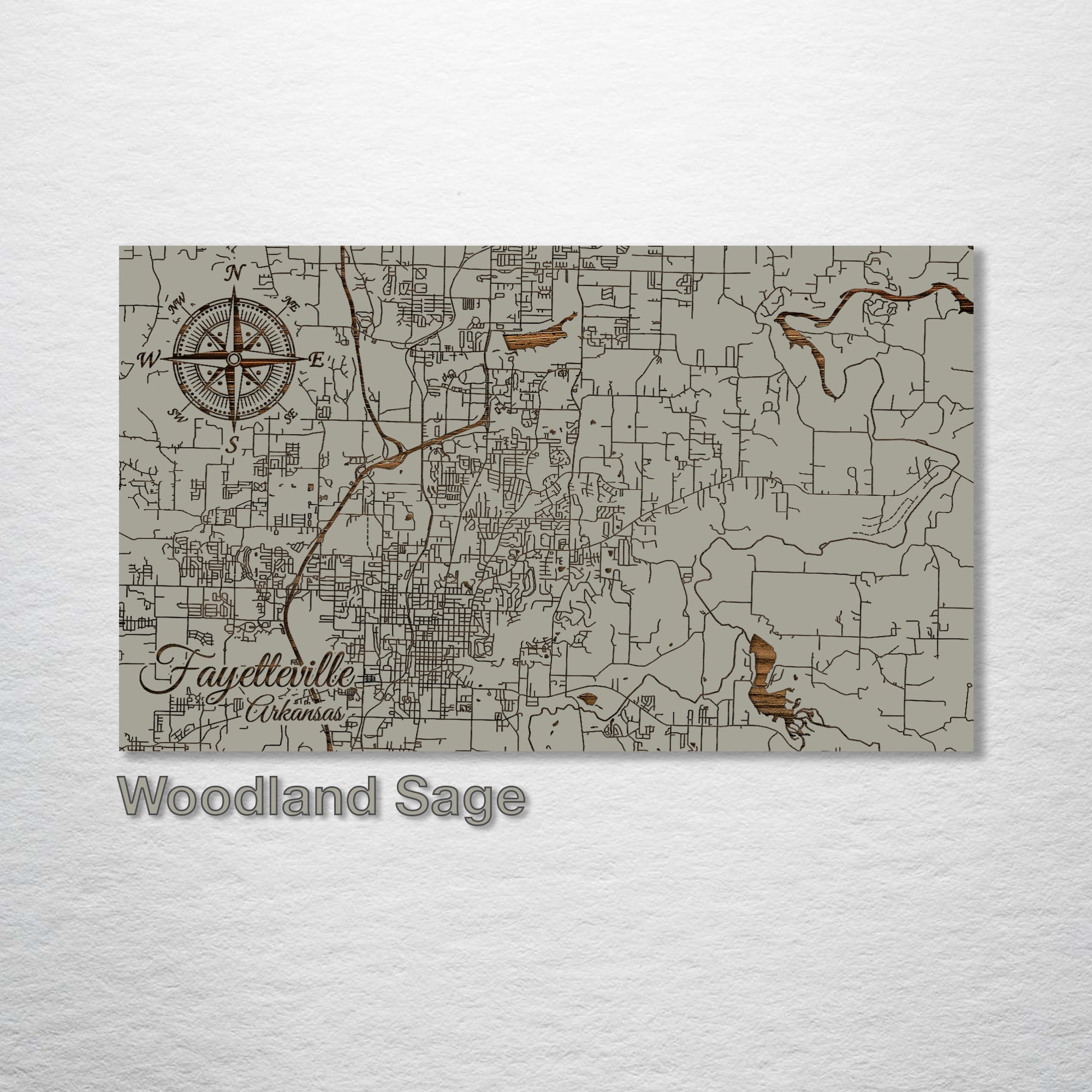 This is a street map of Fayetteville, Arkansas designed by Fire & Pine artists.