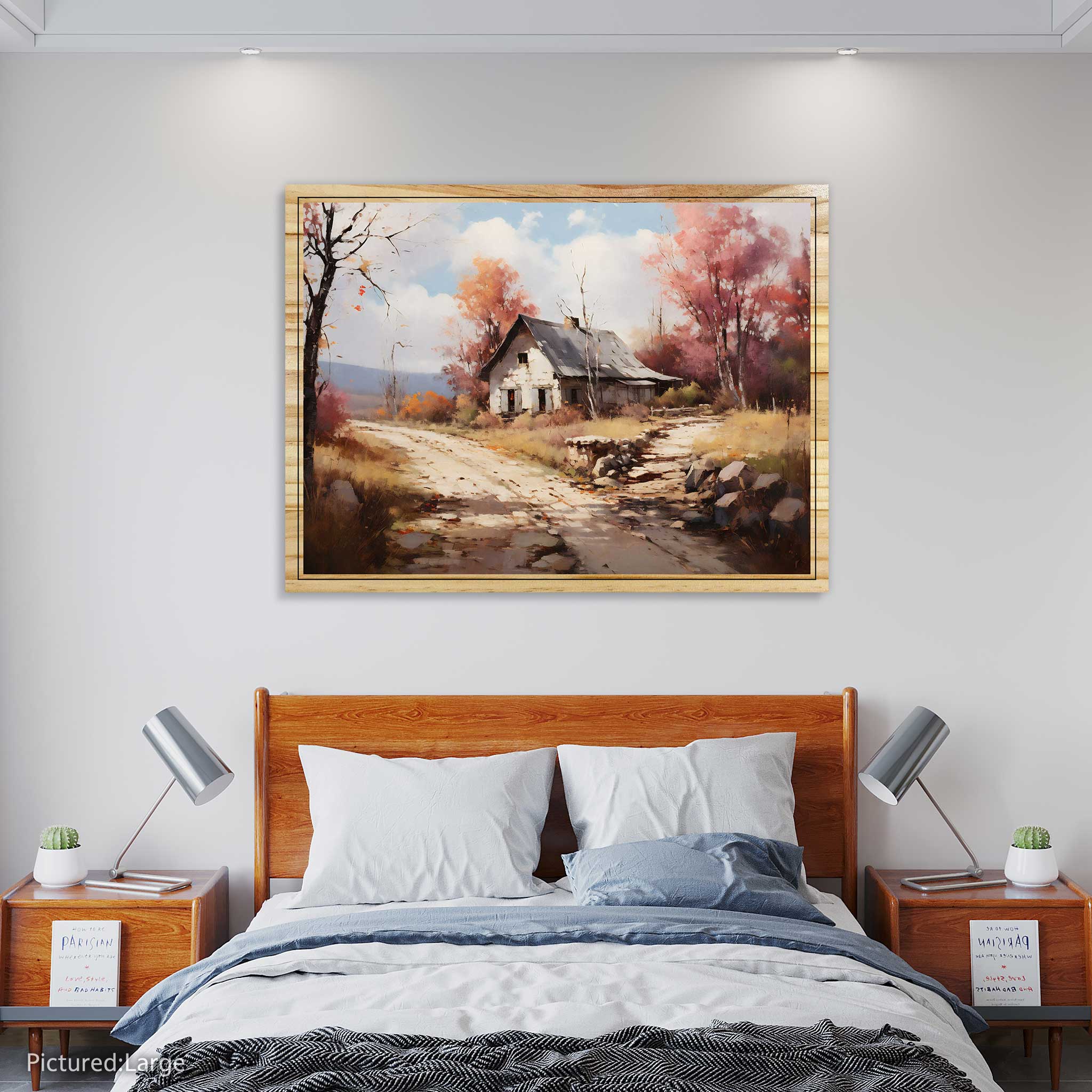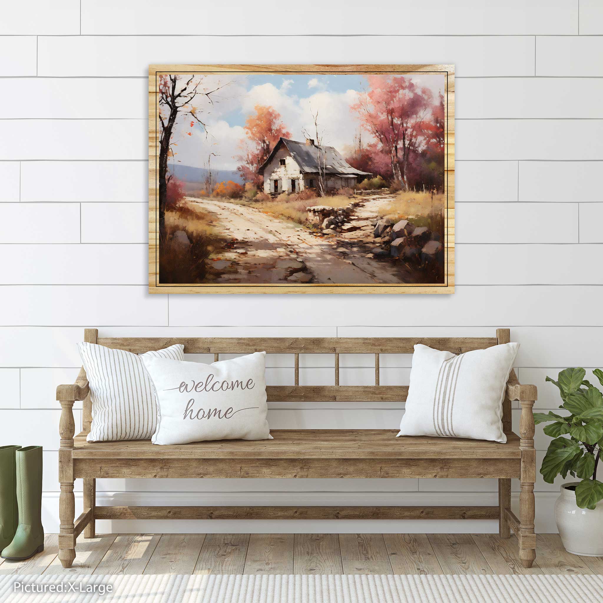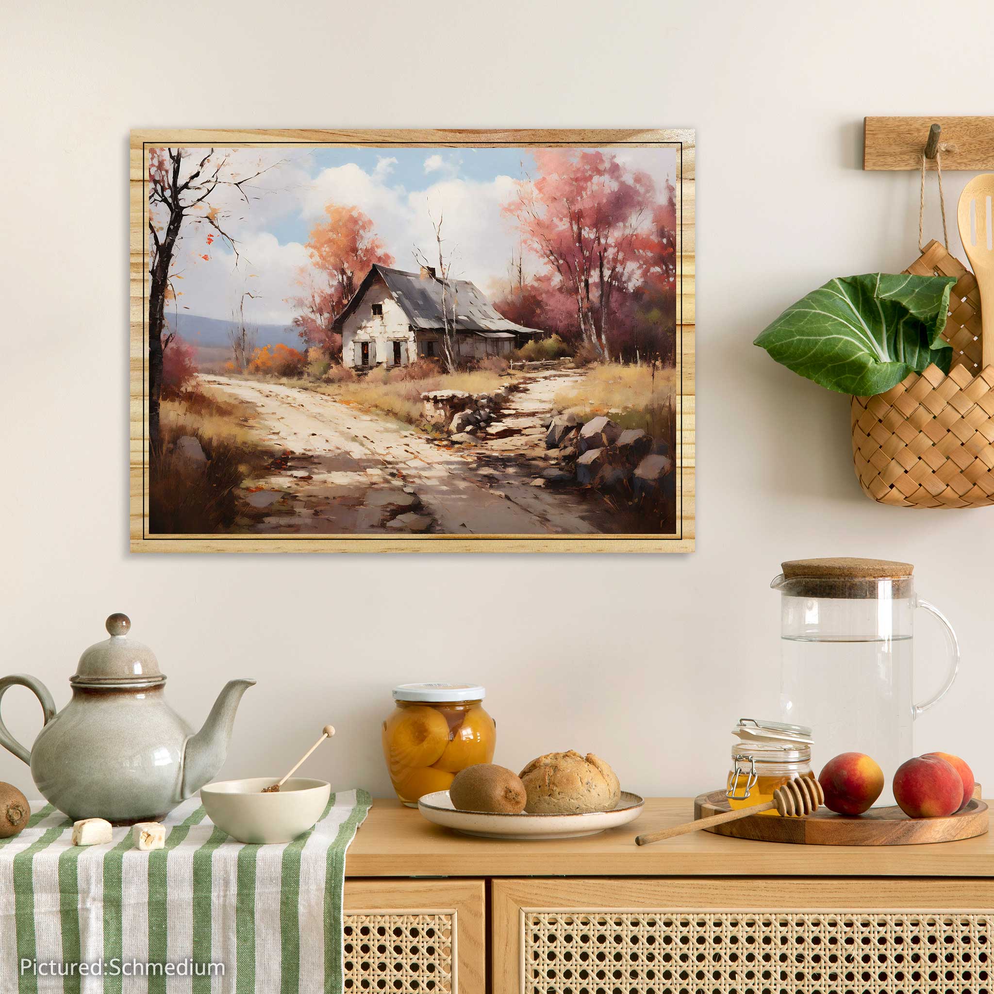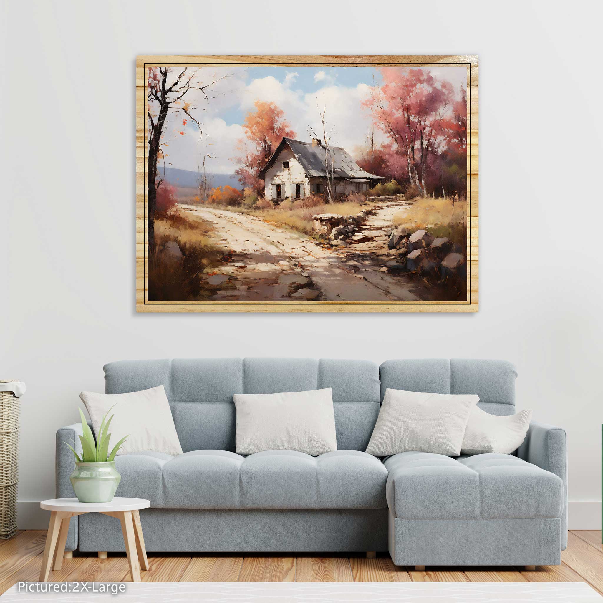 Bring the warmth and coziness of autumn into your home with this stunning painting of a rural landscape. The Autumn’s House artwork captures the beauty of nature in an impressionistic style, with vibrant colors and rich textures. This painting is printed on high-quality pine wood, which adds a rustic charm and durability to the piece. You can choose between a flat print or an elevated print, which creates a 3D effect and adds depth and dimension to the scene. The Autumn’s House artwork is a perfect addition to any room, whether you want to create a cozy atmosphere in your living room, bedroom, or office. It is also a great gift idea for anyone who loves art and nature. Order yours today and enjoy the beauty of autumn all year round!