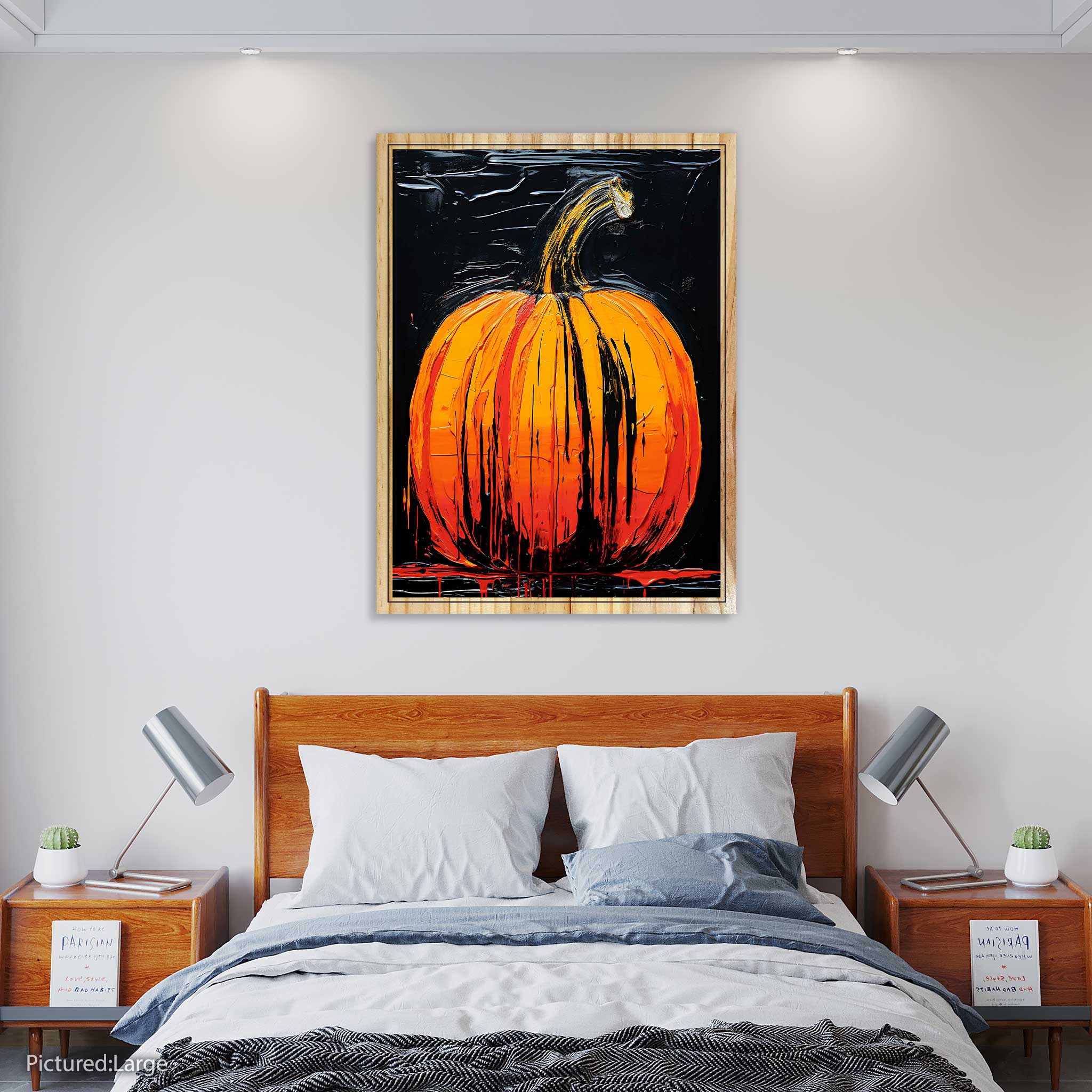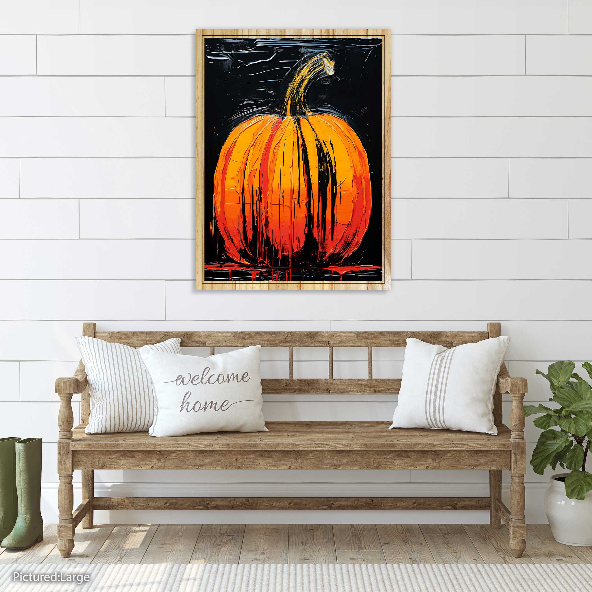 Celebrate the spirit of fall with our "Pumpkin Oil Painting" on top-grade pine wood. Available in both flat and elevated formats, this artwork captures the essence of autumn with its intricate details. Elevate your decor with the elevated print option, adding depth and character to this seasonal masterpiece. Meticulously crafted, this piece embodies the warmth and charm of pumpkin season. Made to impress, it's a stunning addition to your autumnal decorations, showcasing our commitment to superior craftsmanship and quality.