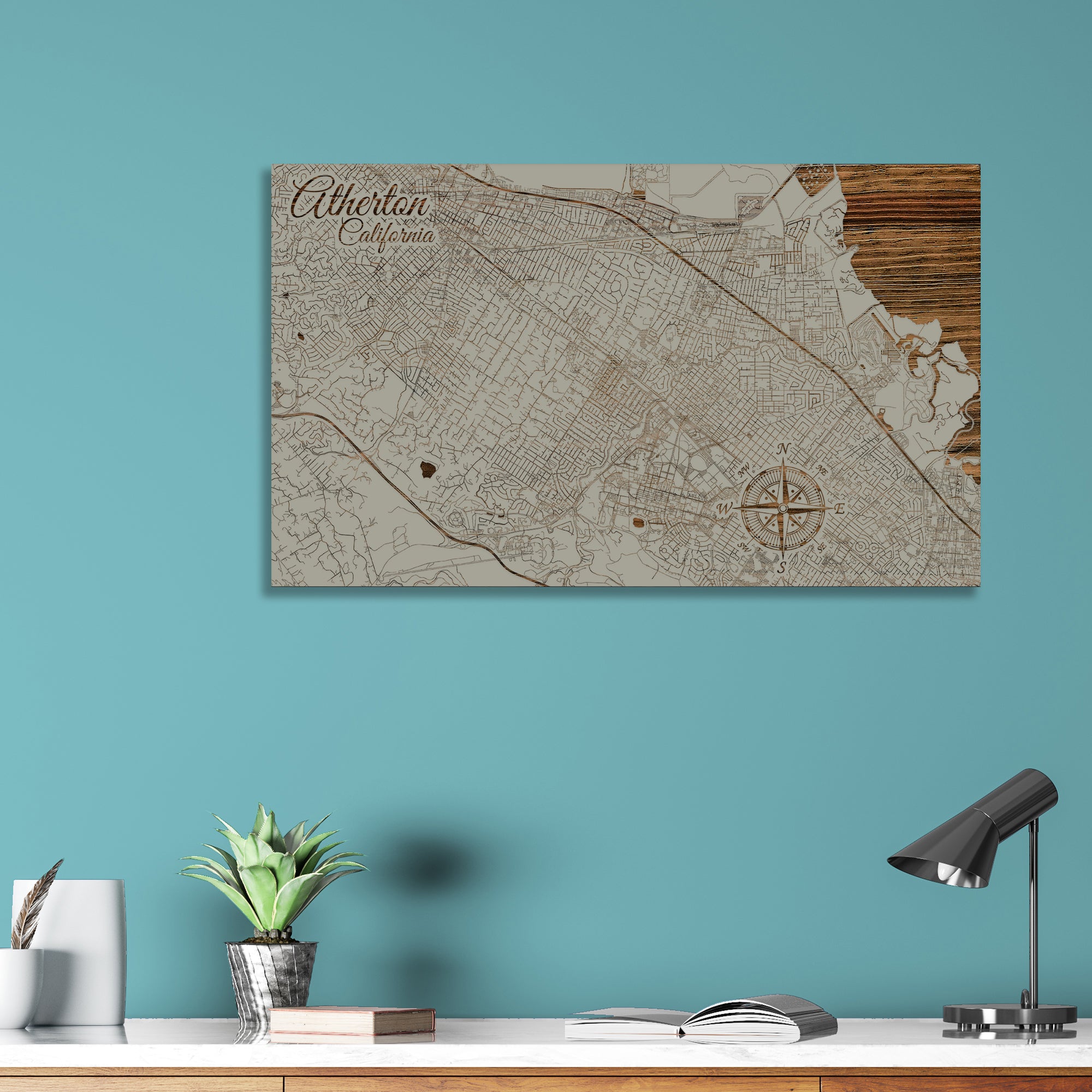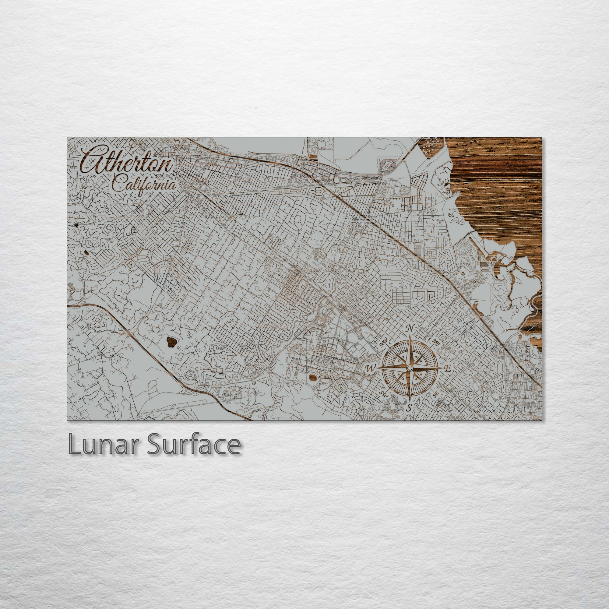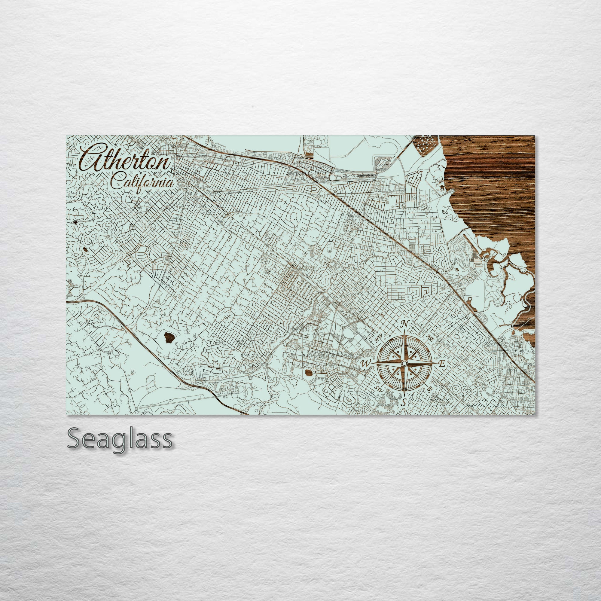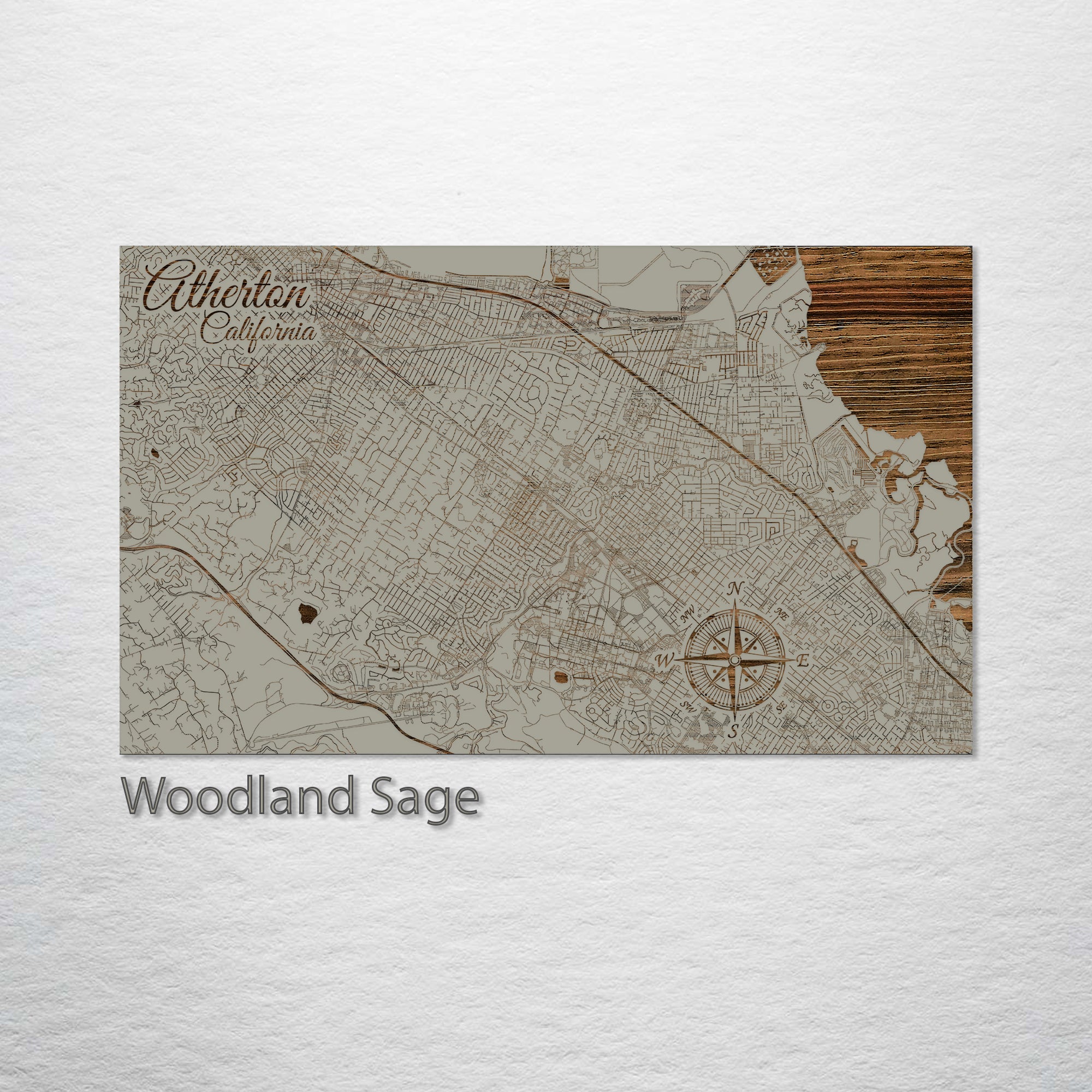 This is a street map of Atherton, CA designed by Fire & Pine artists.