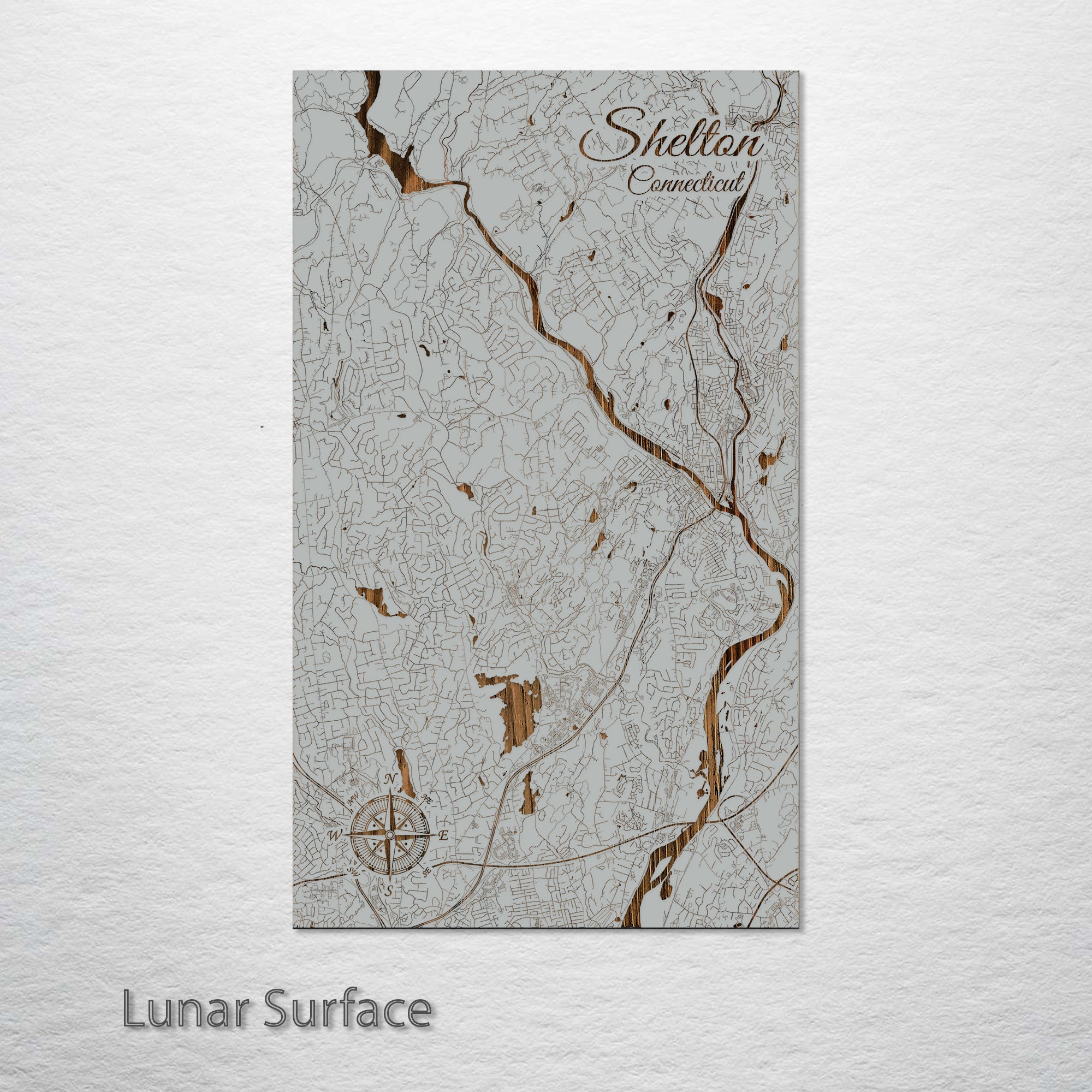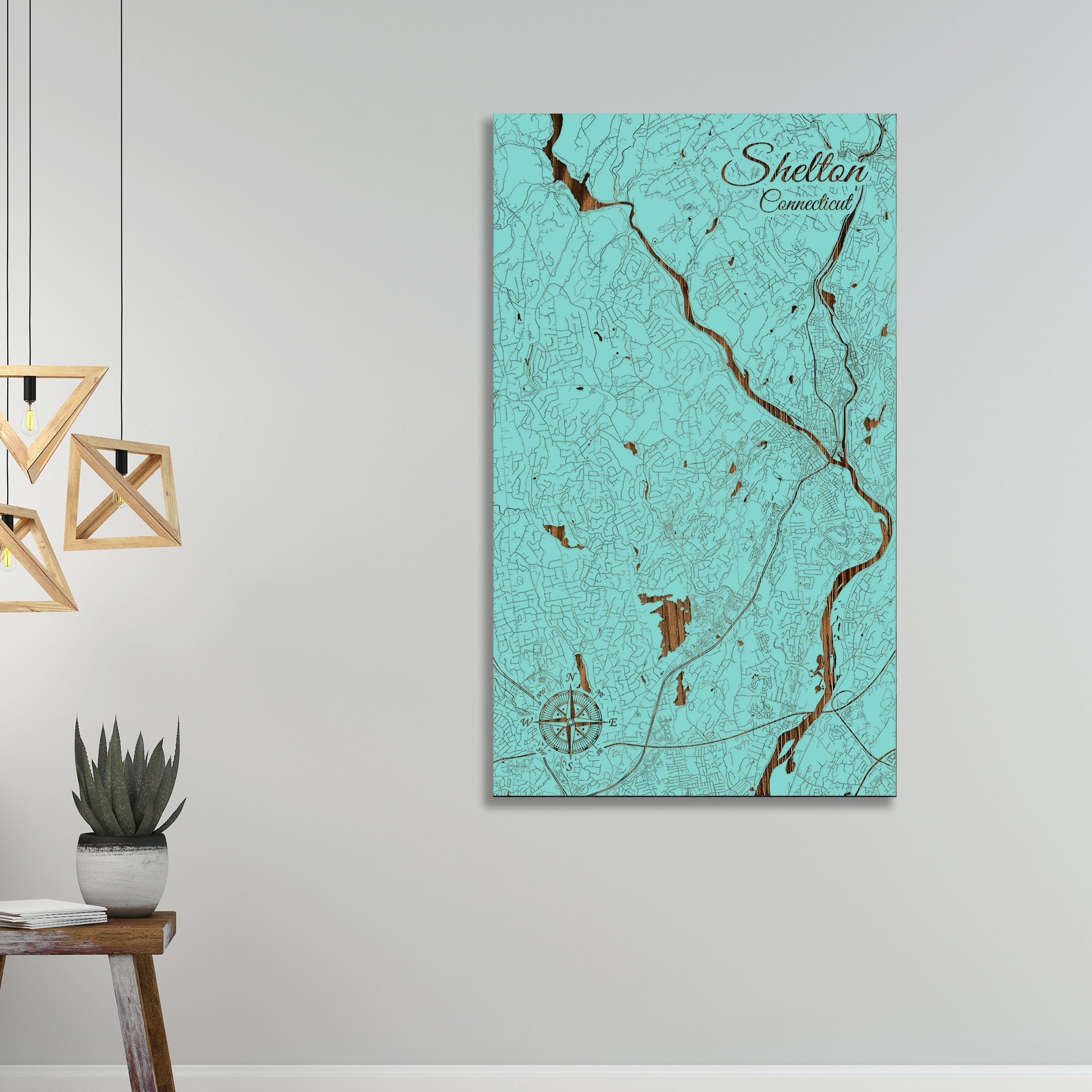 This is a street map of Shelton, CT designed by Fire & Pine artists.