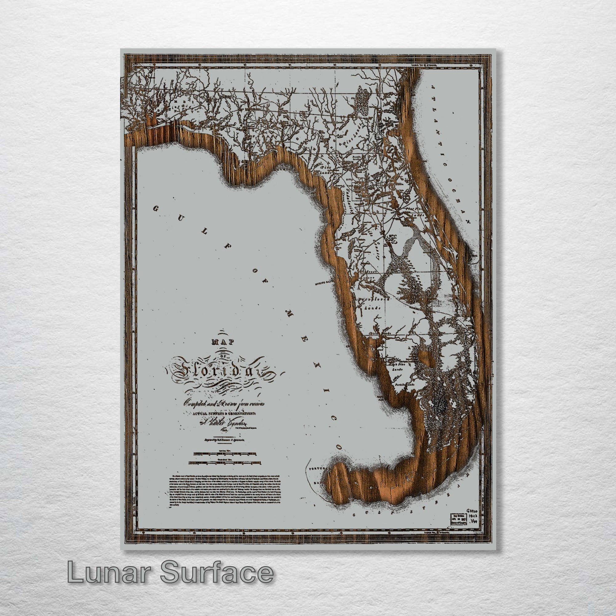 Historic Wood Map of Florida 1823: This wood-engraved map showcases Florida as it was in 1823, providing a detailed historical snapshot. Ideal for historians, Floridians, or those fascinated by vintage maps and geography.
