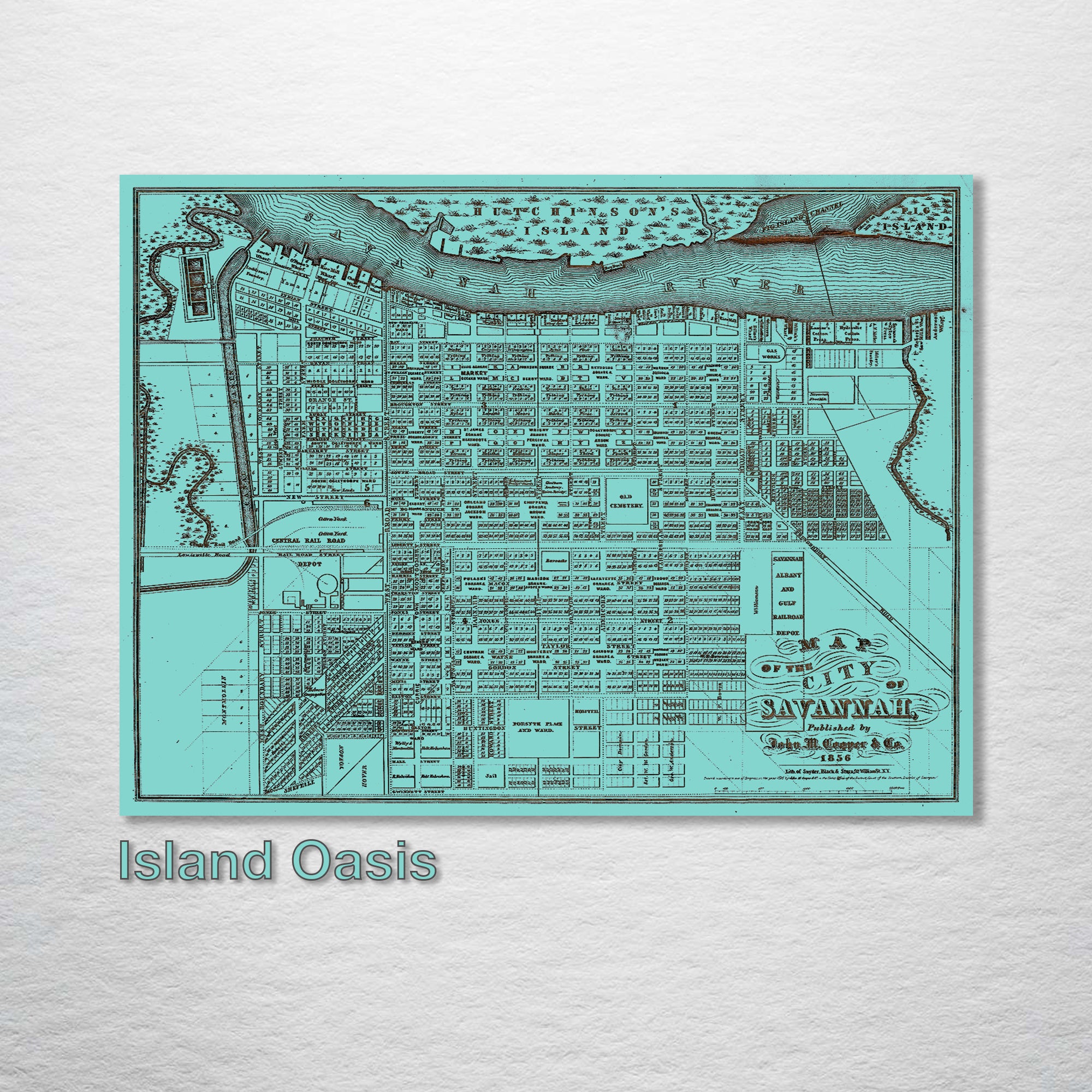 City of Savannah, Georgia 1856 Map: Experience a historical journey with this wood-engraved representation of Savannah as it was in the year 1856. This unique wall art draws attention to Savannah's architectural and cultural history, perfect for aficionados of Southern history, historical maps, and Georgia's past.