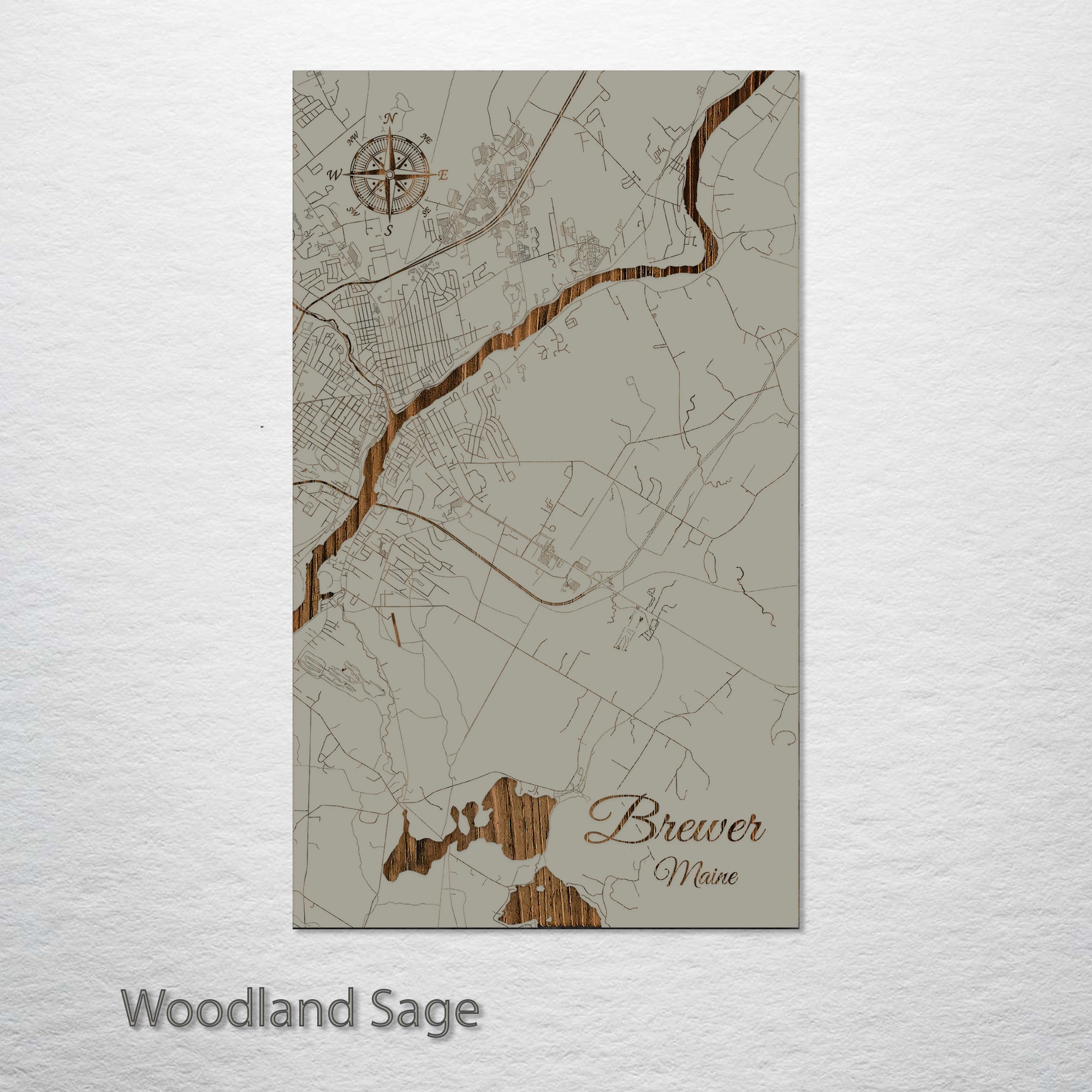 This is a street map of Brewer, ME designed by Fire & Pine artists.