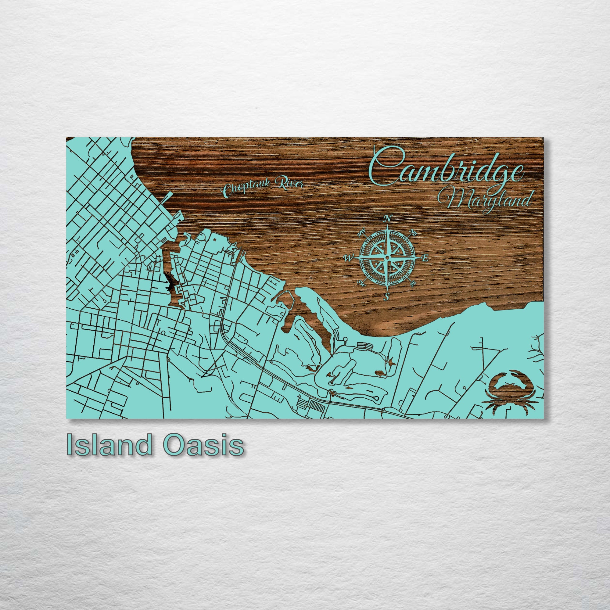 This is a street map of Cambridge, Maryland designed by Fire & Pine artists.