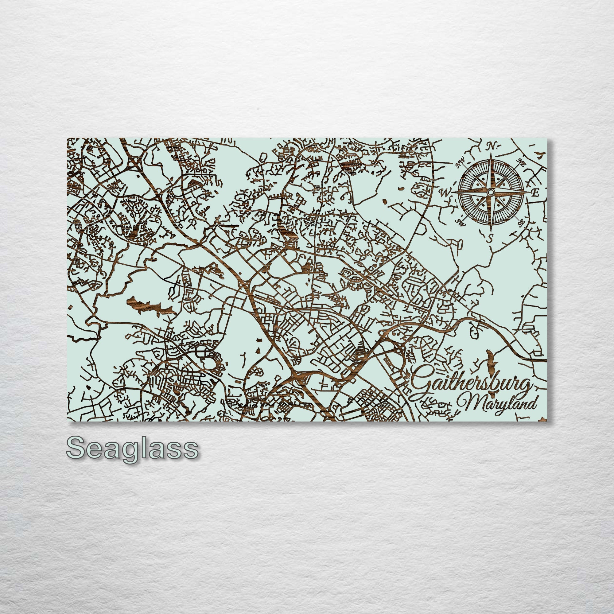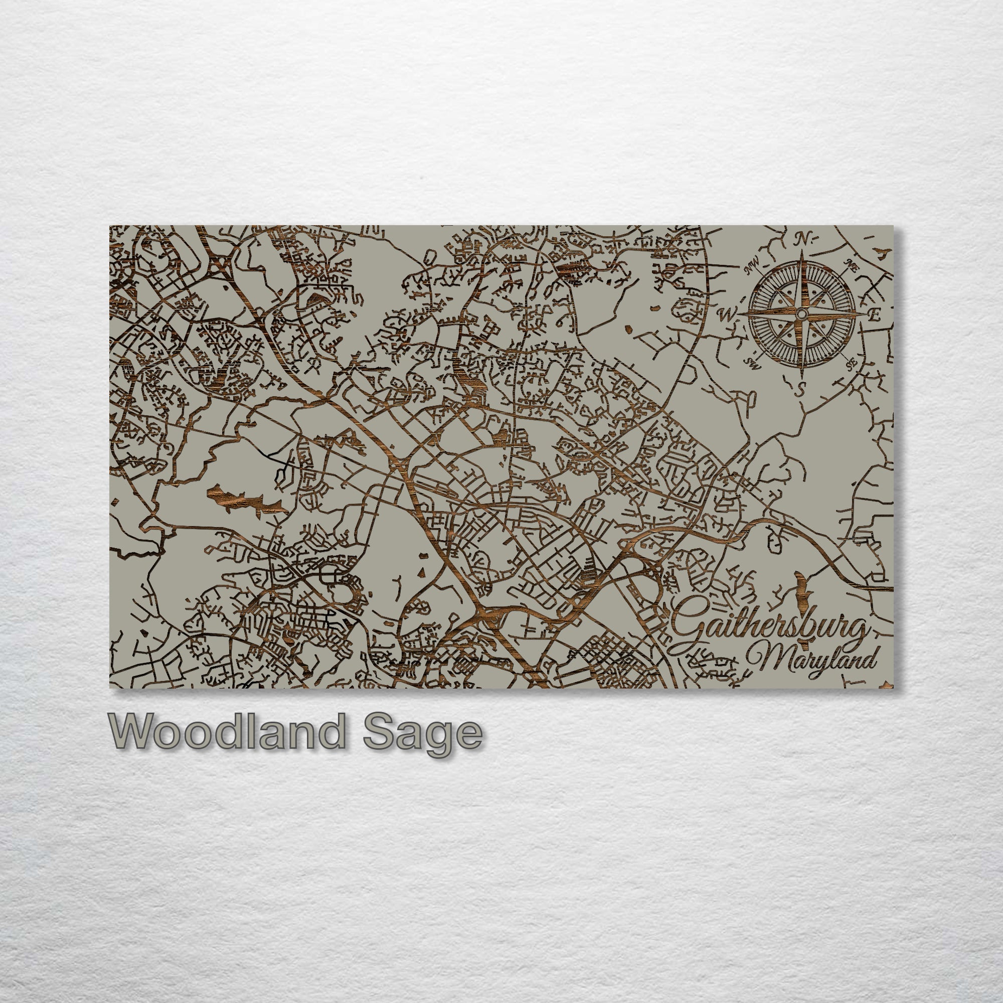 This is a street map of Gaithersburg, Maryland designed by Fire & Pine artists.