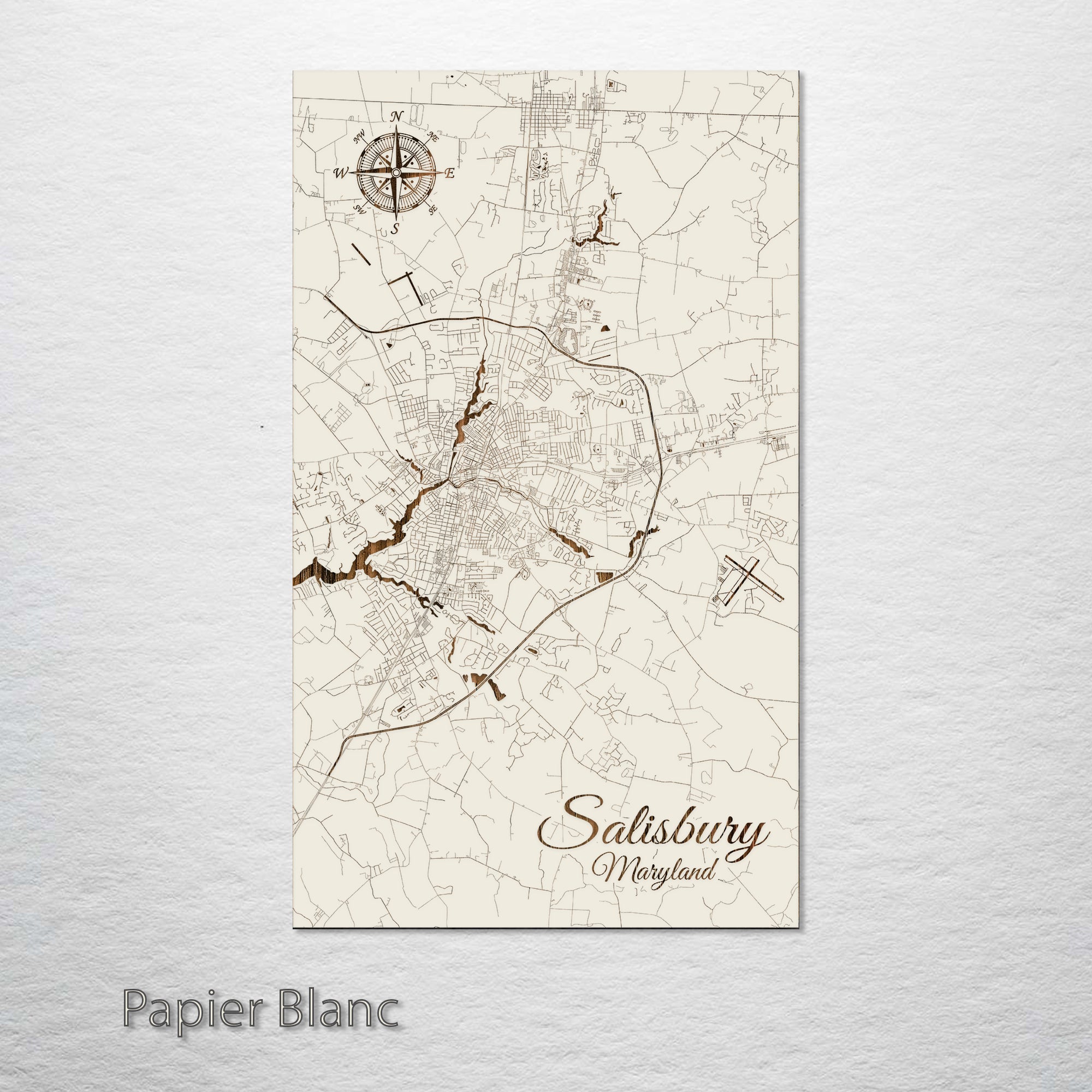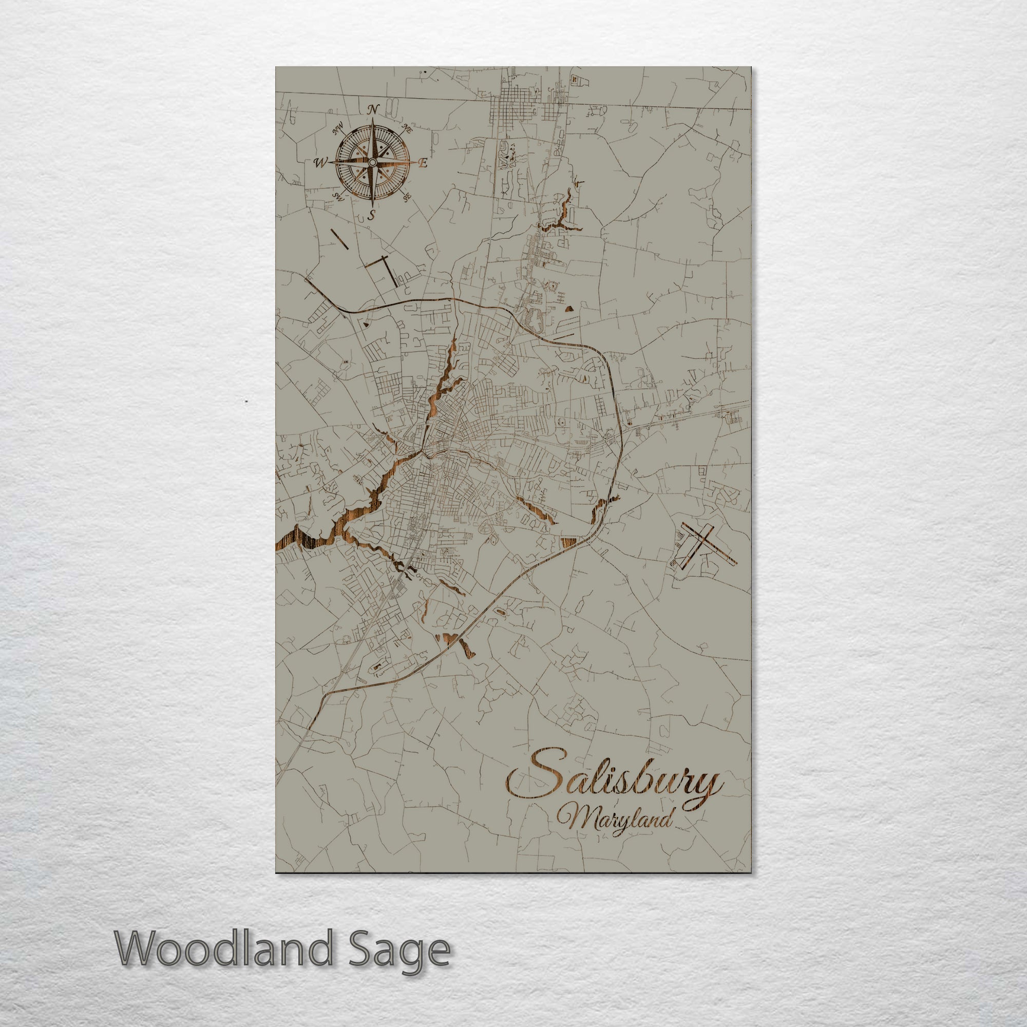 This is a street map of Salisbury, MD designed by Fire & Pine artists.