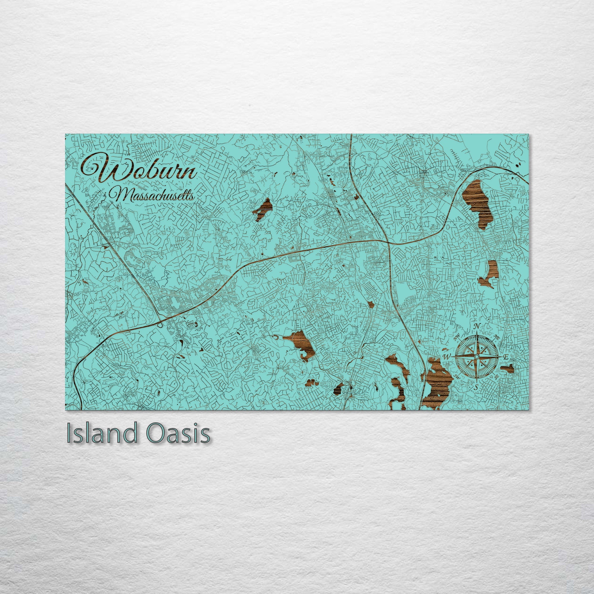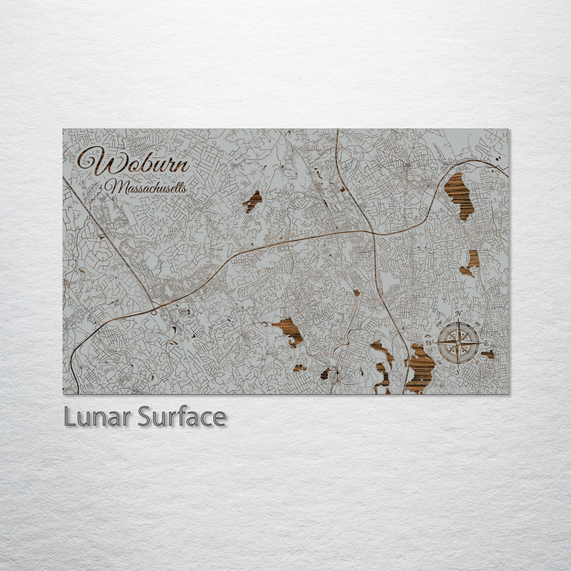 This is a street map of Woburn, MA designed by Fire & Pine artists.