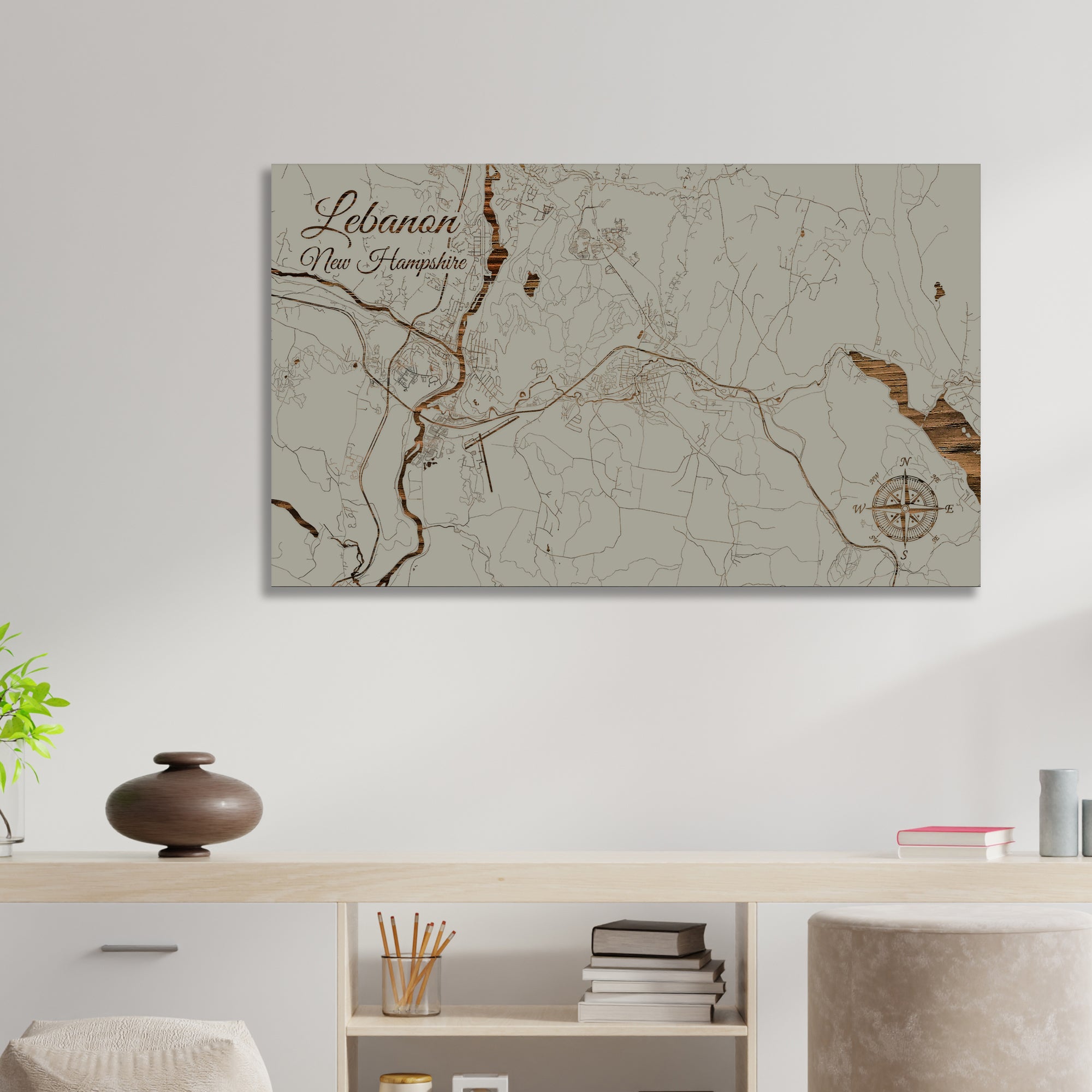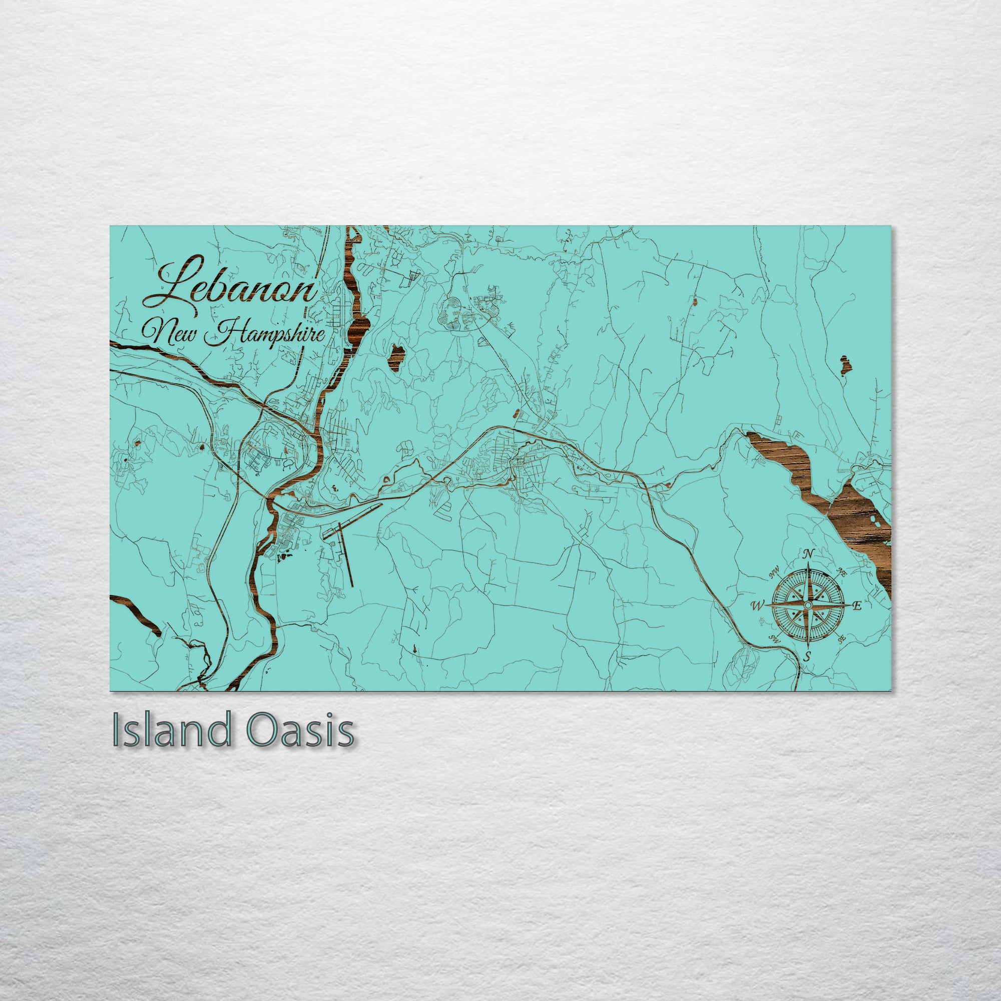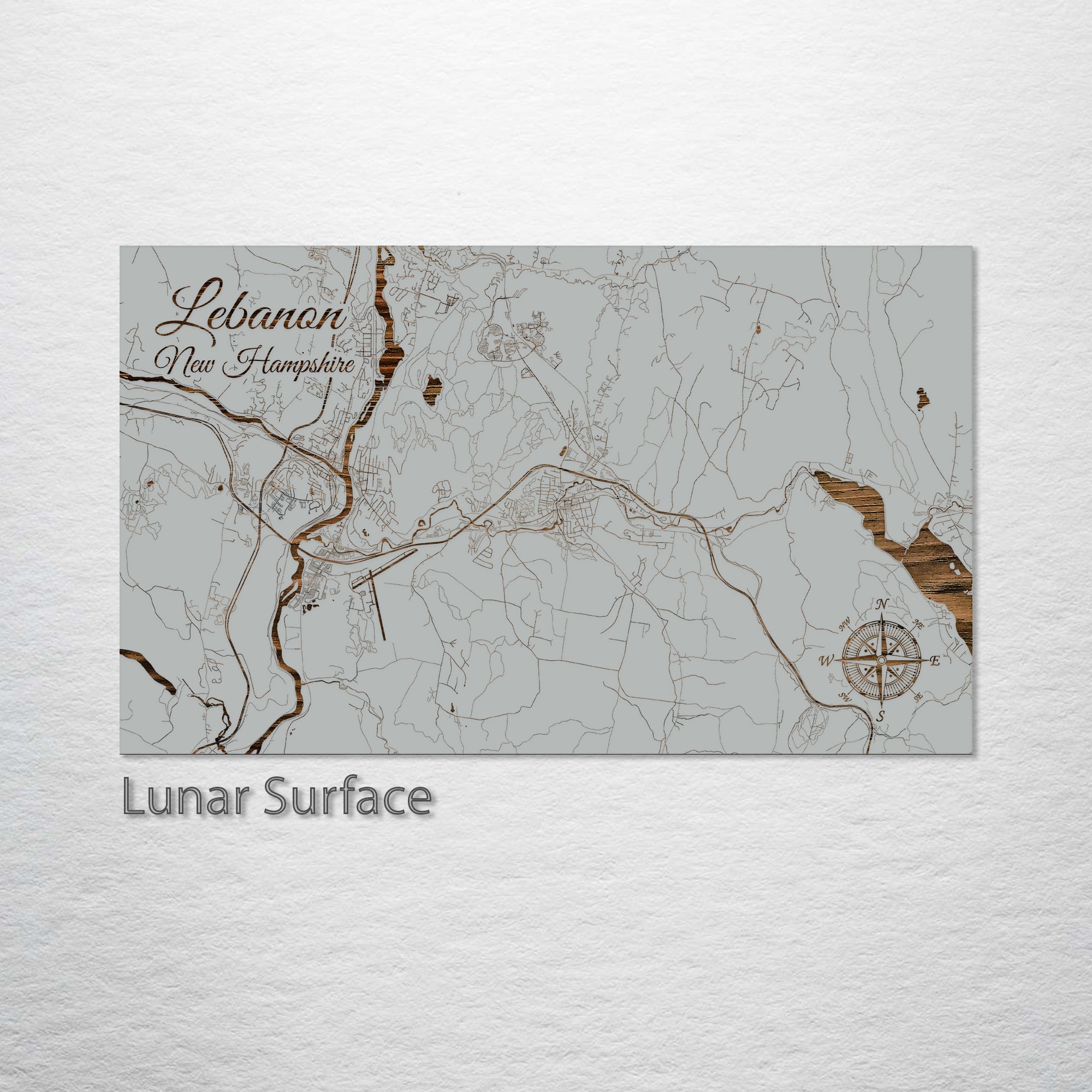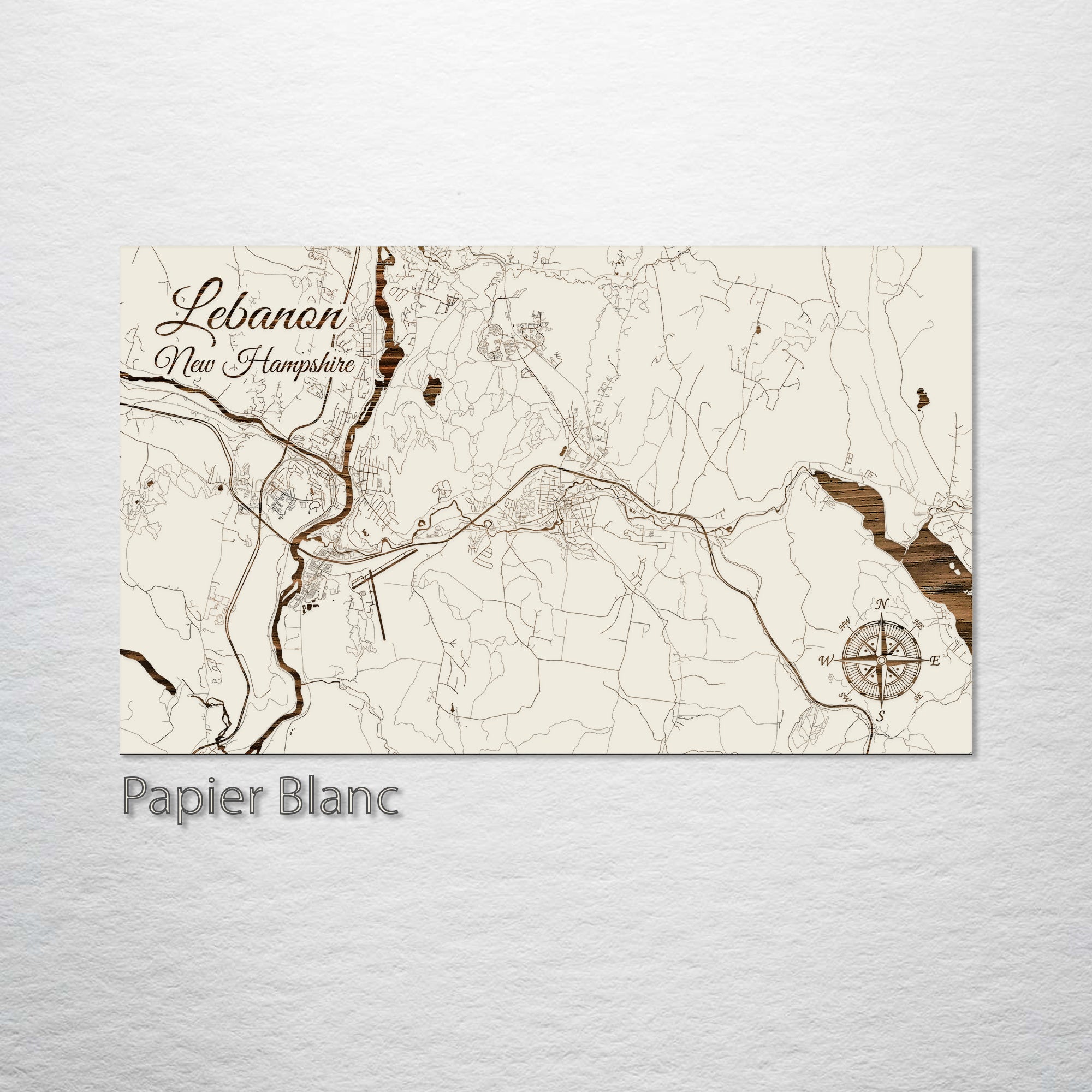 This is a street map of Lebanon, NH designed by Fire & Pine artists.