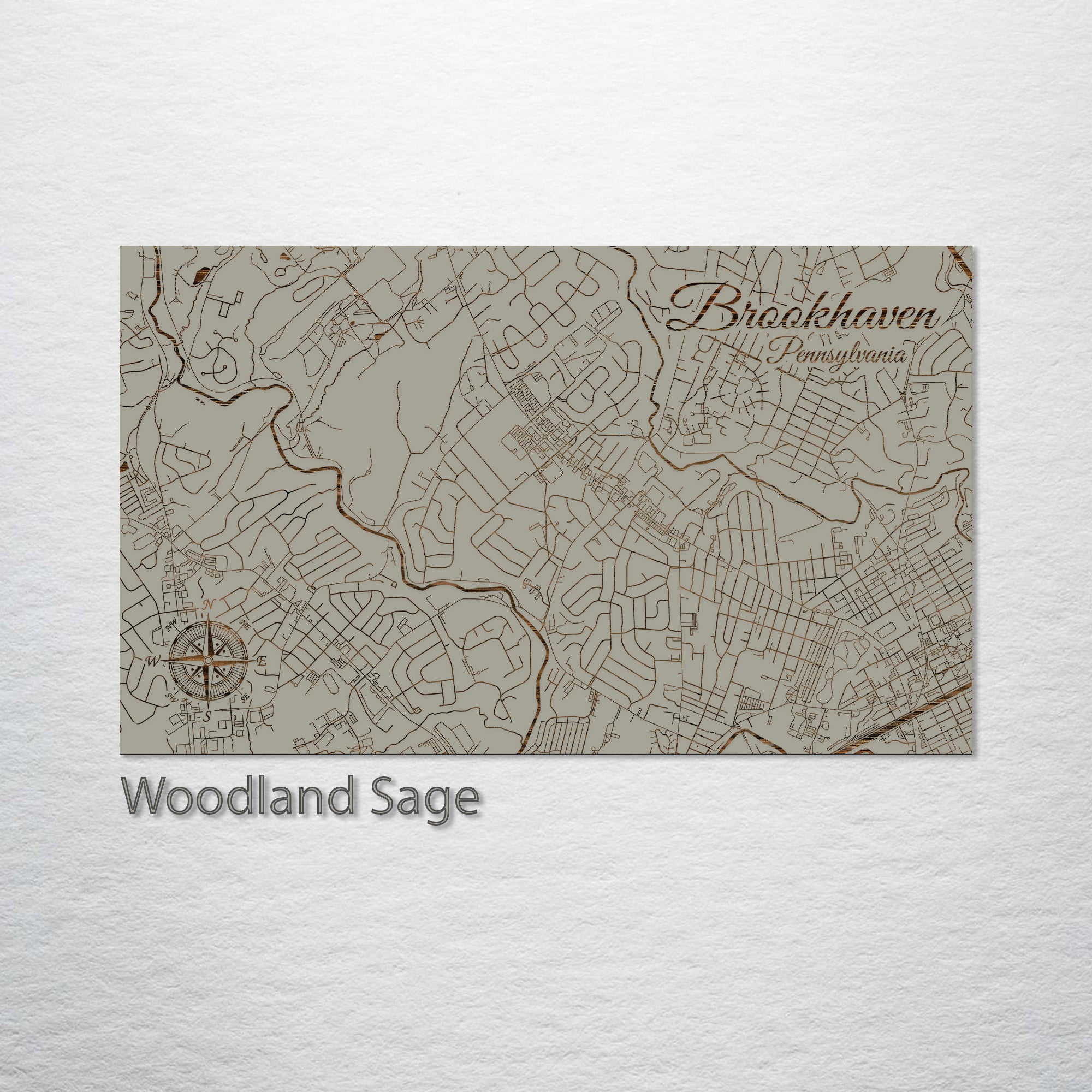 This is a street map of Brookhaven, PA designed by Fire & Pine artists.