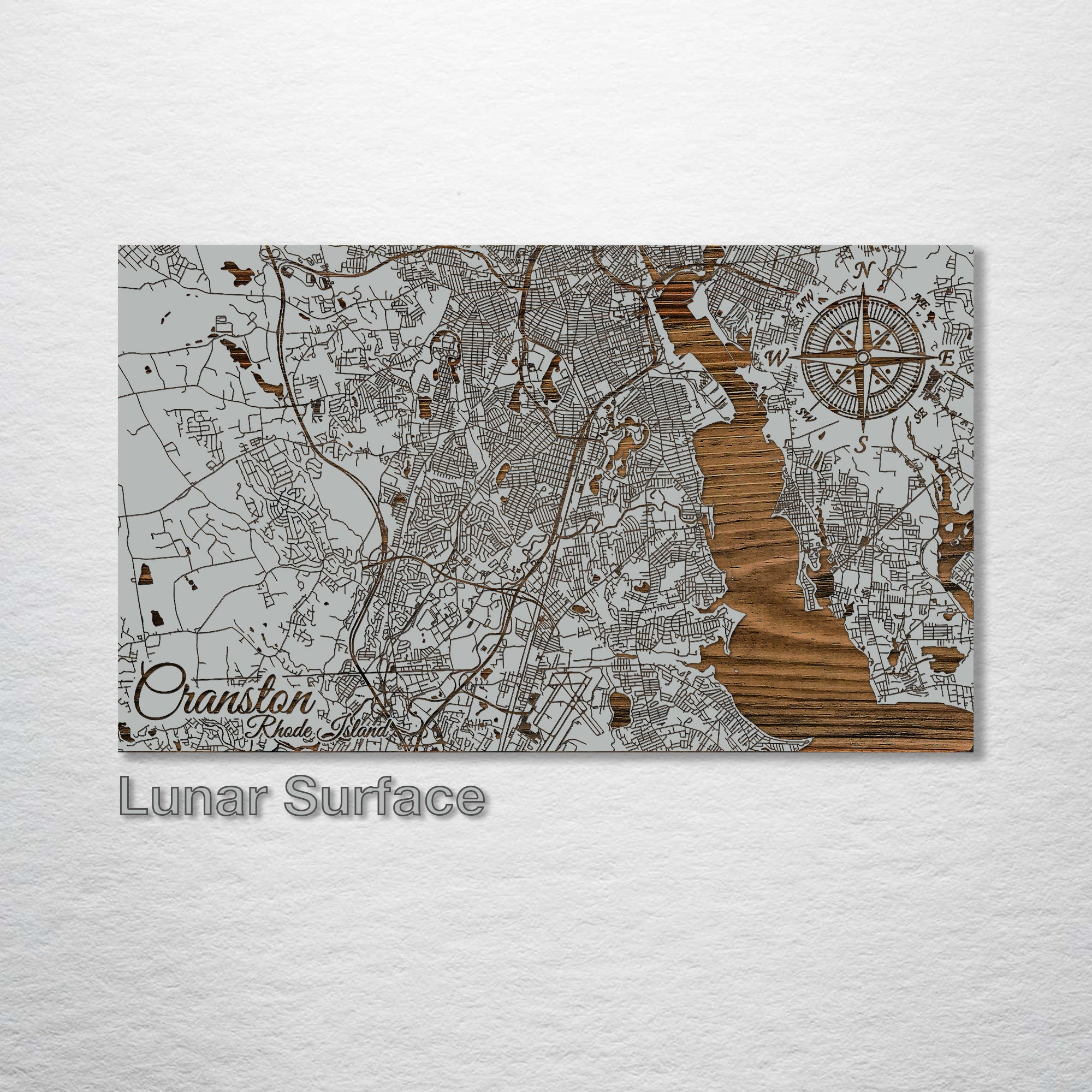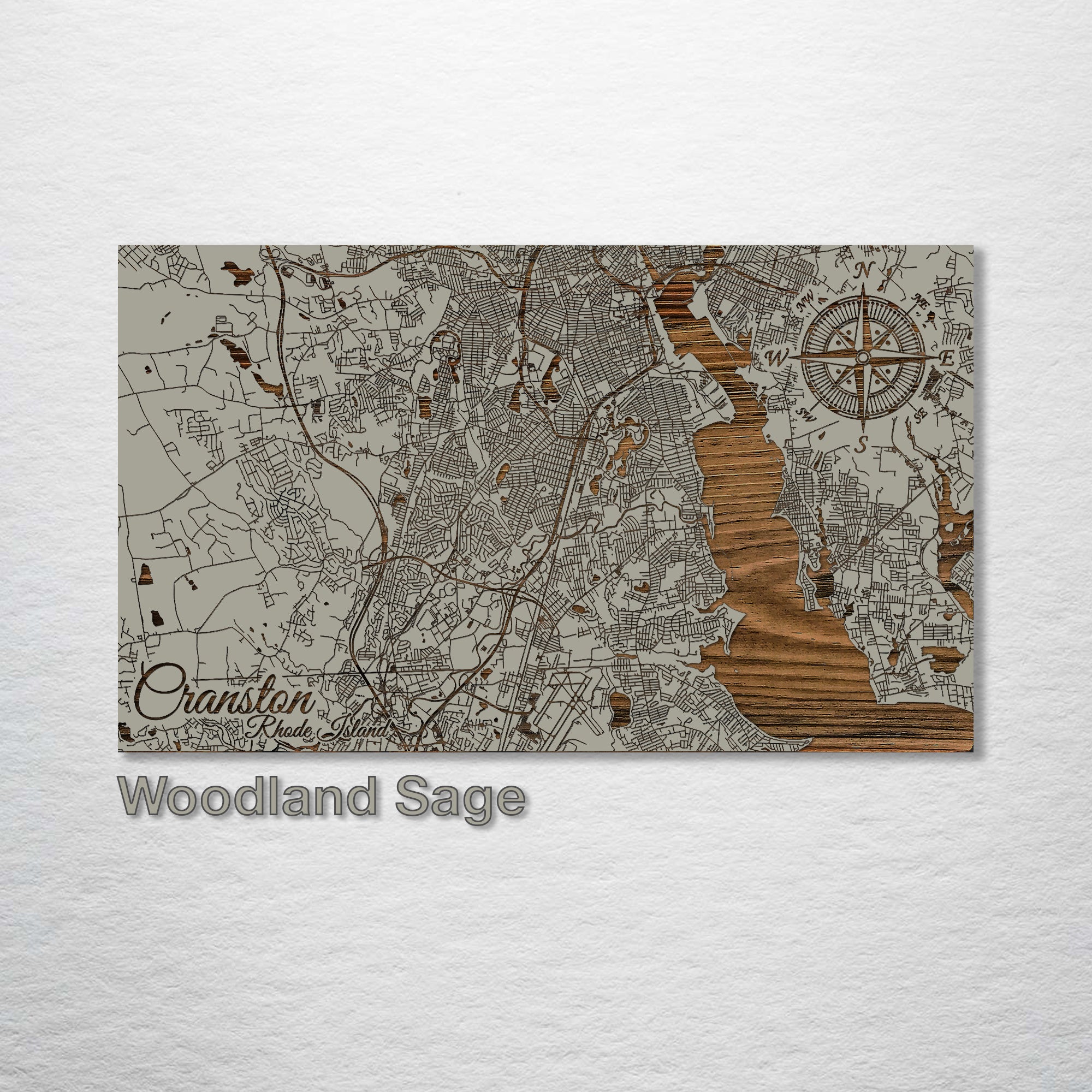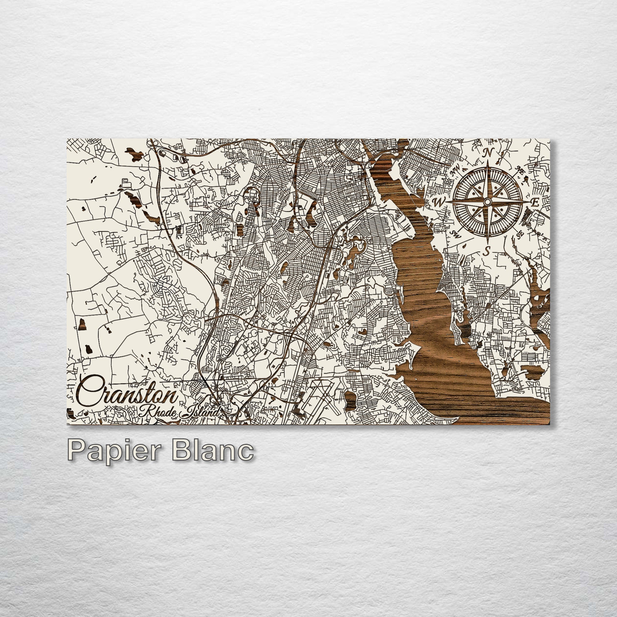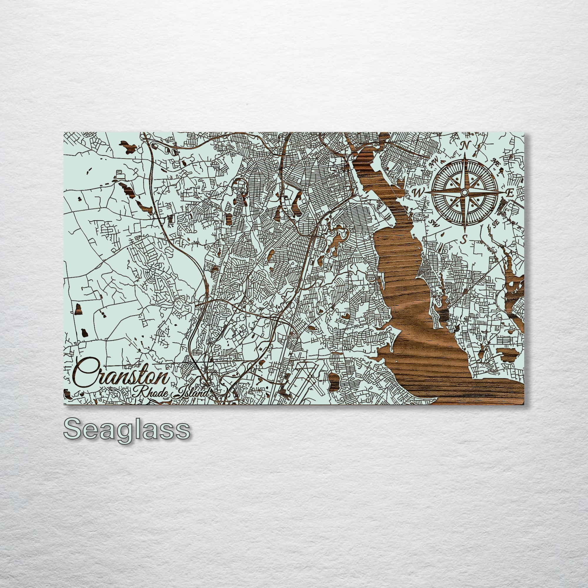 This is a street map of Cranston, Rhode Island designed by Fire & Pine artists.