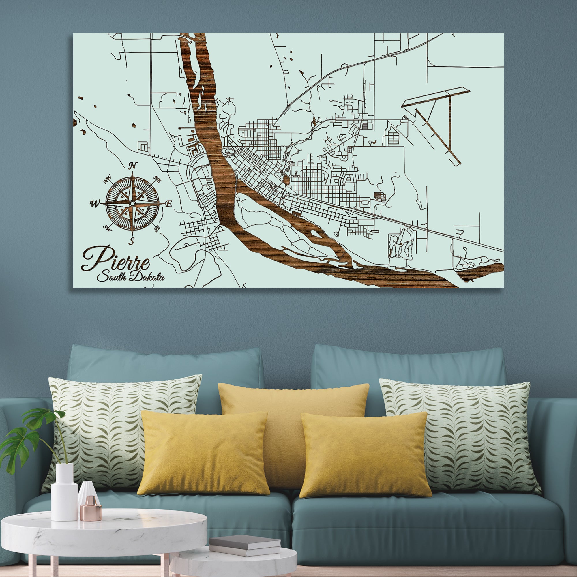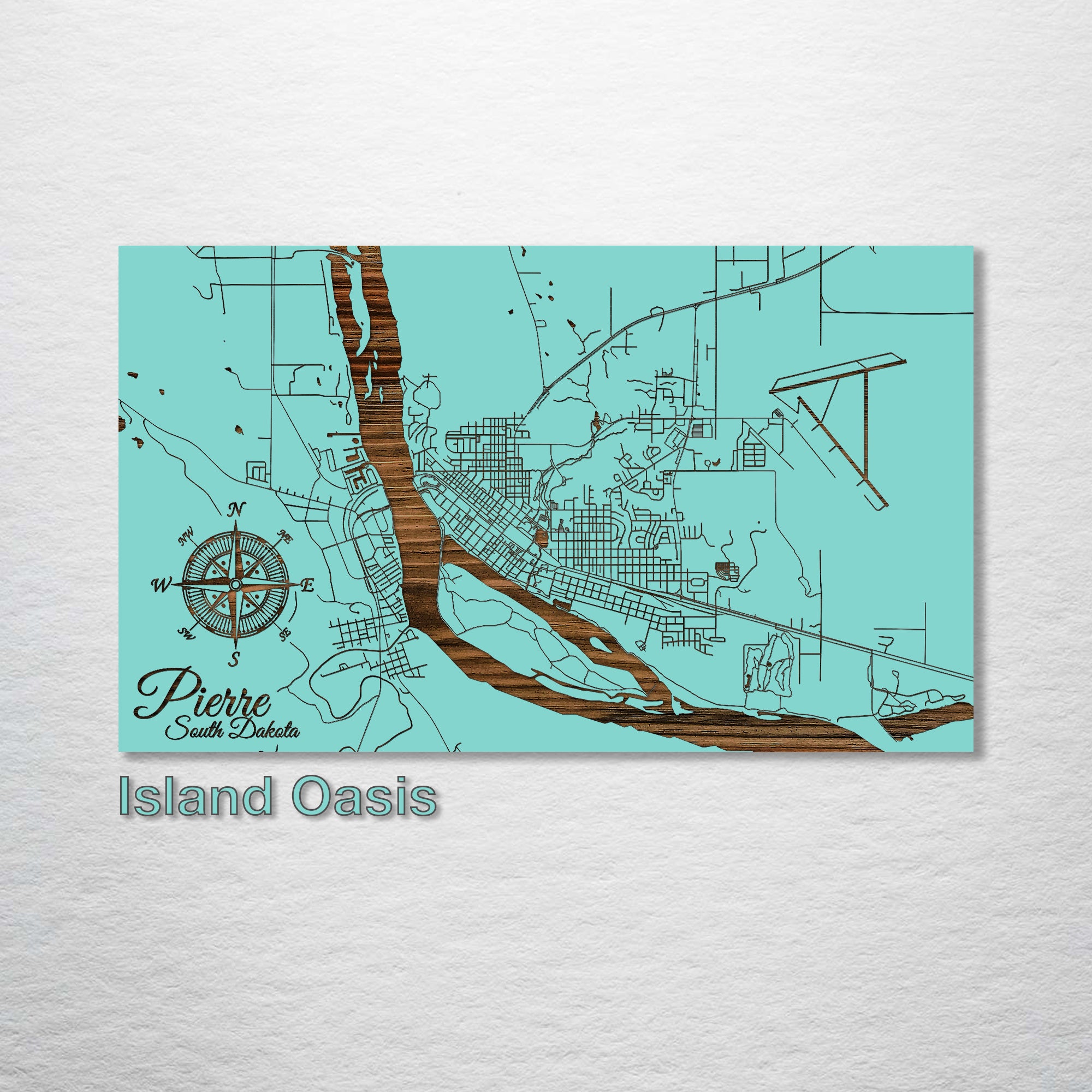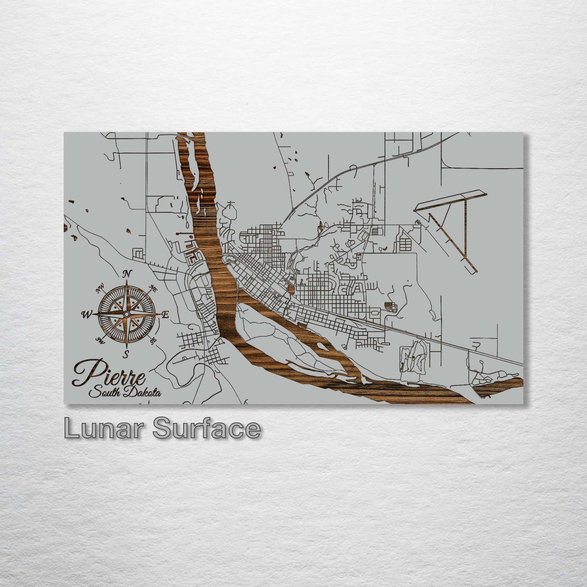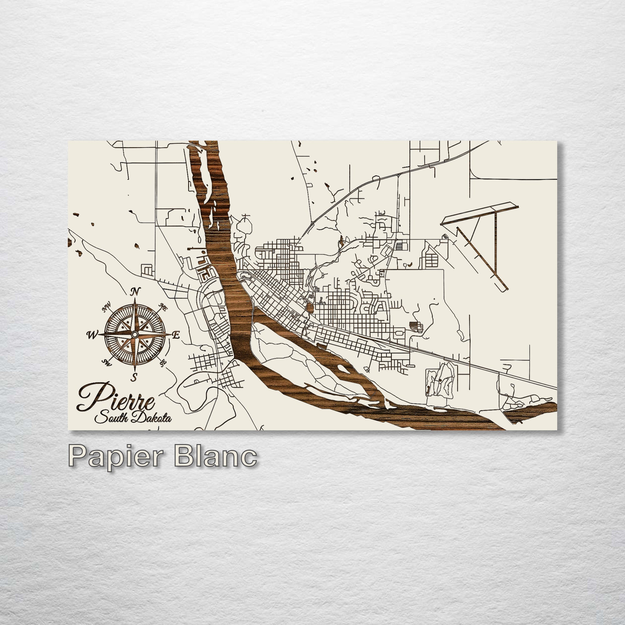This is a street map of Pierre, South Dakota designed by Fire & Pine artists.