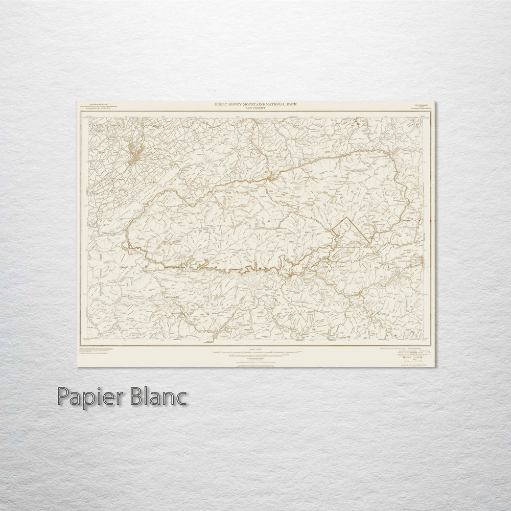 Great Smoky Mountains National Park 1941 Engraved Map (Gold)