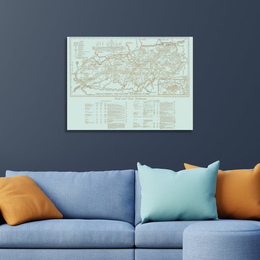 Great Smoky Mountains Road & Trail Distances 1940 Engraved Patent (Gold)