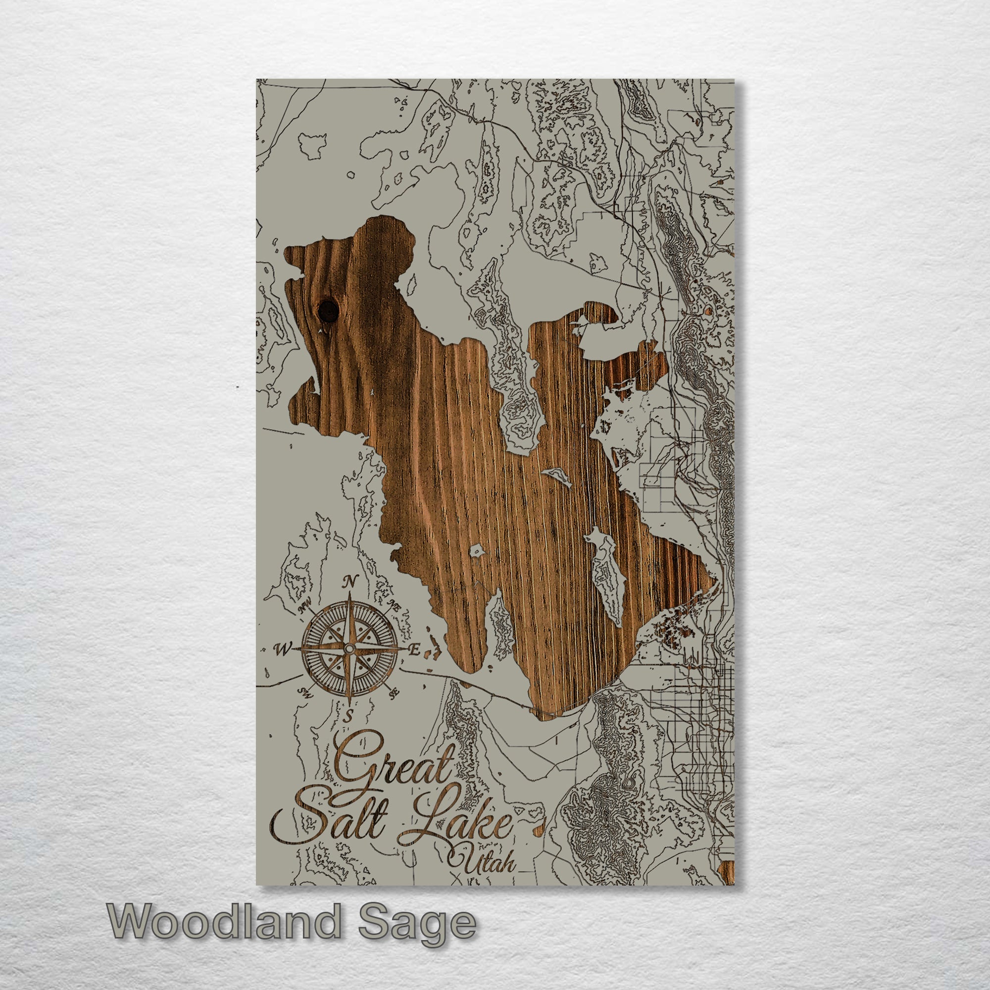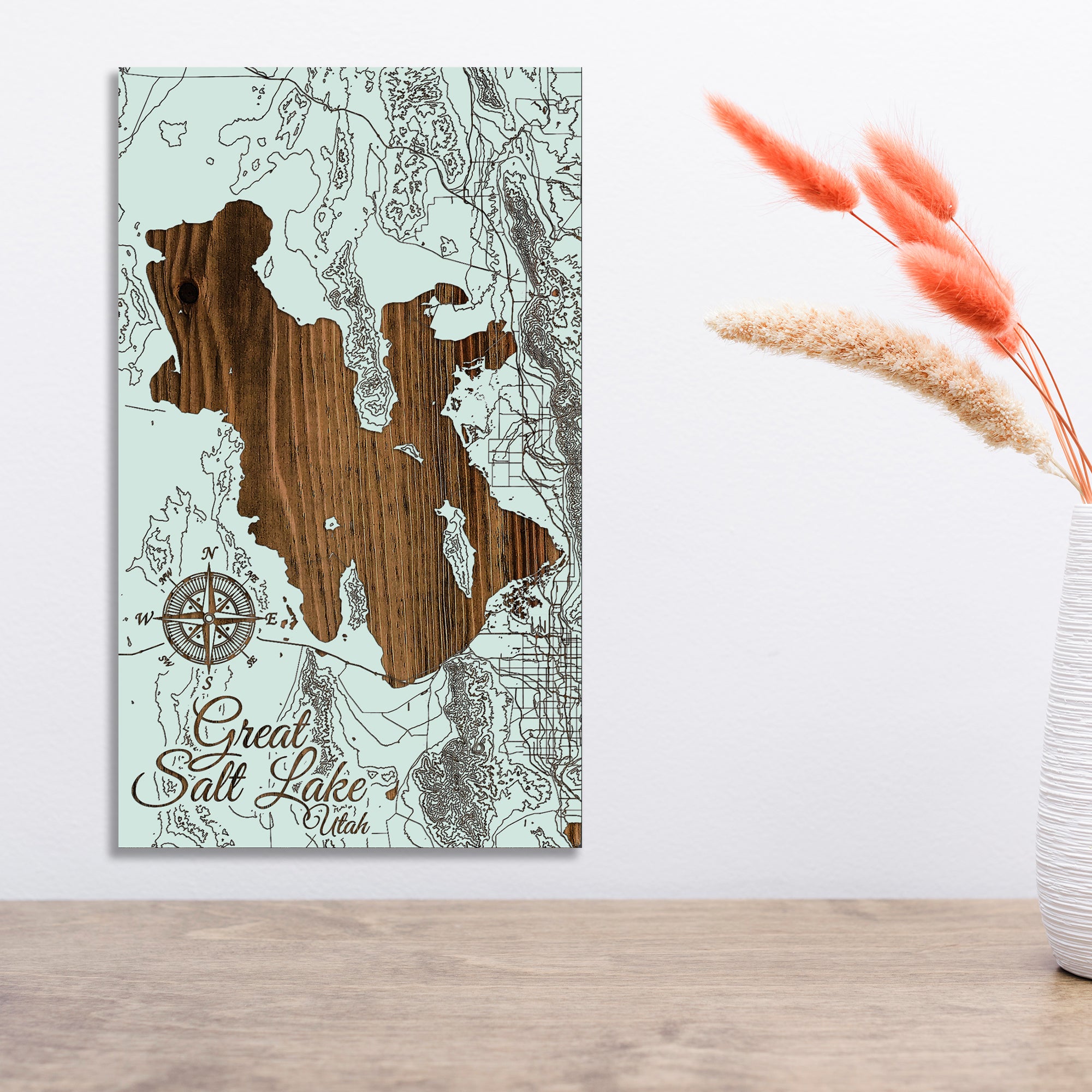 This is a map of Great Salt Lake in Utah designed by Fire & Pine artists.