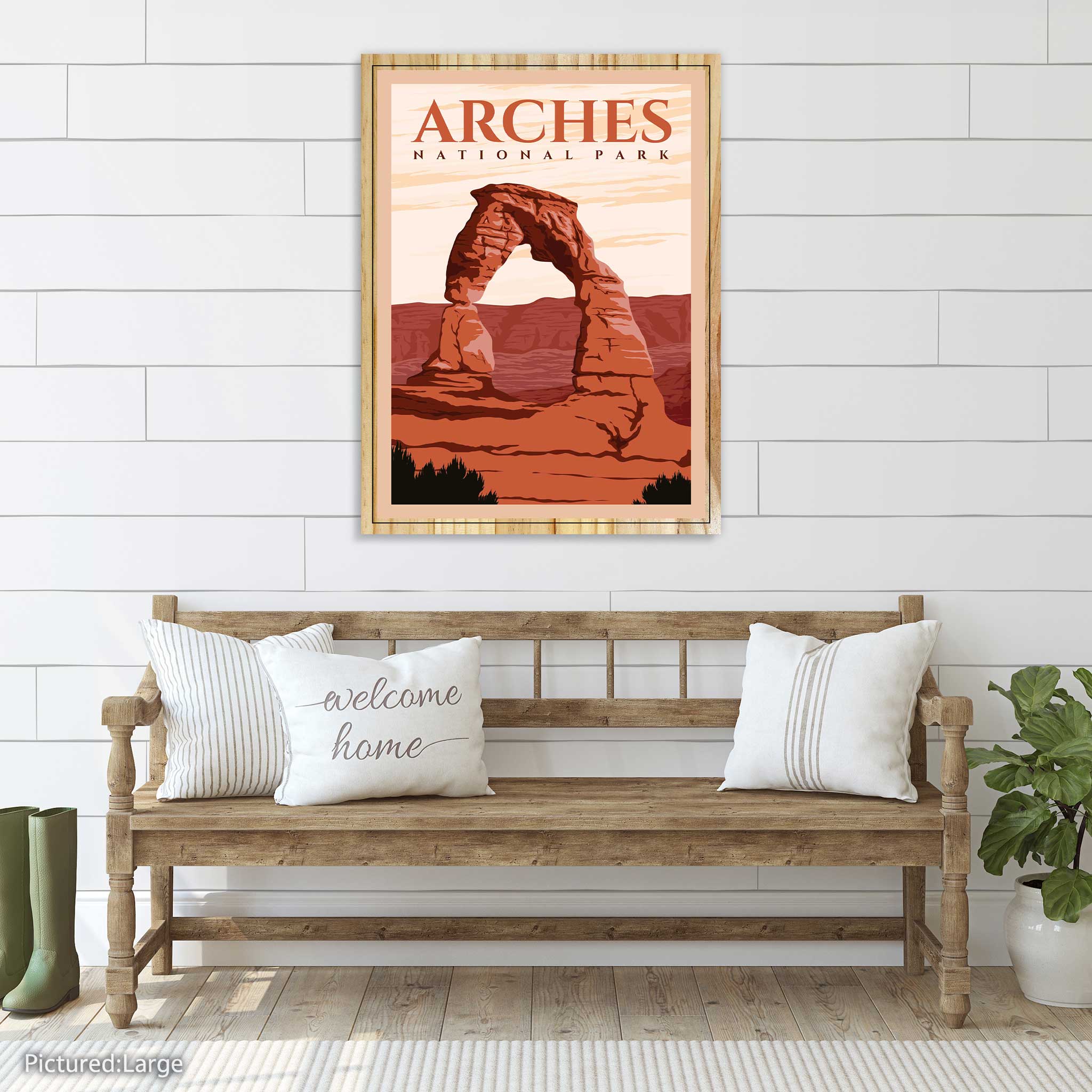 Whether displayed in your living room, study, or gallery, the 'Arches National Park' Travel Poster serves as a visual invitation to immerse yourself in the captivating landscapes of this extraordinary national park.